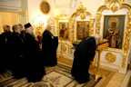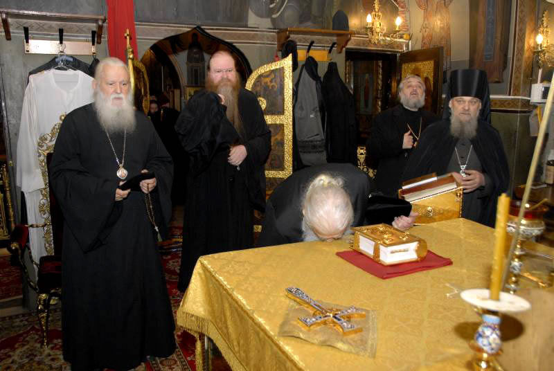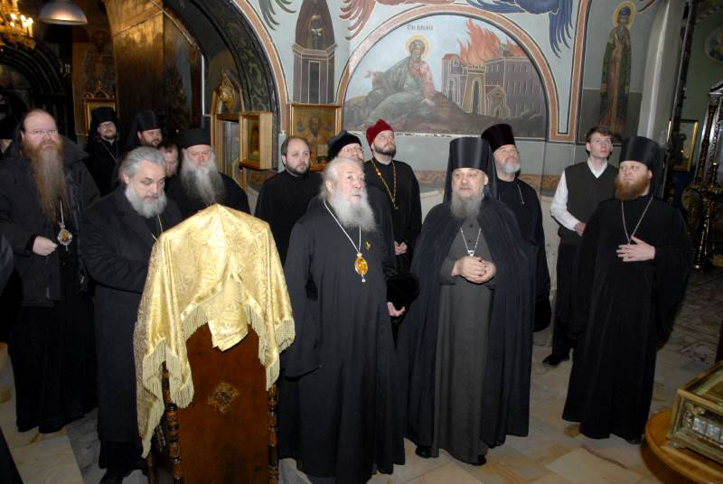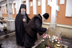 On February 28, 2008, the delegation of the Russian Orthodox Church Outside of Russia headed by His Eminence Metropolitan Laurus visited Peredelkino. Venerating the holy icons and relics of Transfiguration of the Savior Church and blessing the monastics who labor here, His Eminence headed for the grave of the late Metropolitan Nestor (Anisimov, +1962), who was particularly revered by the Russians of Harbin. There, Protopriest Serafim Gan performed a memorial litiya.