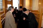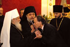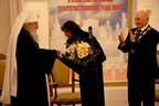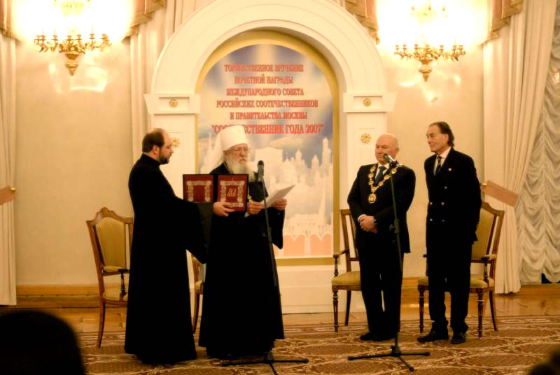 Thank you, dear Yuri Mikhailovich, and thank you, members of the International Council of Compatriots, for your kind words. I bear the cross bestowed upon me to the best of my ability, thanks to my assistants: the members of the Synod of Bishops, the episcopate, the pious clergymen, and the many thousands of faithful whose prayers help me in my work. Therefore, I accept this award as a symbol of the lofty recognition of the labors of the archpastors, pastors and flock of the Russian Orthodox Church Outside of Russia, which always suffered for Russia, always burned with the desire to serve her, preserving and multiplying the great legacy left to us by our forefathers. I would gladly prostrate myself before all the clergy and flock for the earnestness with which they help me as they serve the Russian Orthodox Church to their salvation. I hope this continues forever. And if it does, it will be easy for me to bear upon my shoulders the service of Primate of the Russian Church Abroad.