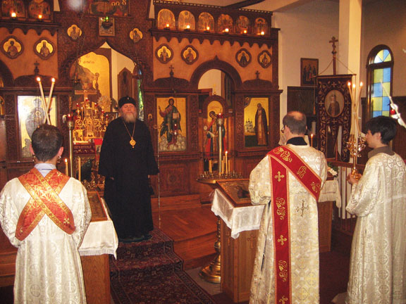 In his reply, His Eminence recalled the ever-memorable Bishop Mitrofan of Boston, who had for many years been the rector of the parish, and prayerfully wished the rector strength to bear his pastoral duties; and for the clergy, parishioners, and those who were there to pray, peace, unity, and consolation as they pray together in the church. Fr Serafim then acquainted His Eminence with plans for the adornment of the church, which he had presented previously to the members of the Parish Council, and showed him the parish's treasured holy objects. These included the kamilavka of St John of Kronstadt, which had been preserved for many decades in the family of the Rector; as well as a great many portions of the relics of the saints. Having invoked the blessing of God upon the clergy and parishioners and bade them farewell, His Eminence proceeded to the rectory, where, with Fr Michael and Fr Serafim, he received visitors. Later, at the residence of the Shohov family (relatives of the late Bishop Mitrofan) a reception was given in honor of the First Hierarch.