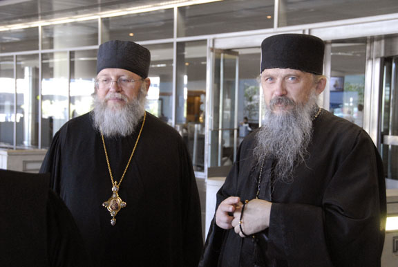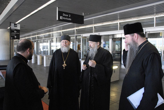 Today, His Eminence Metropolitan Hilarion was greeted at San Francisco International Airport by His Eminence Archbishop Kyrill of San Francisco and Western America, Secretary of the Synod of Bishops, along with His Grace Bishop John of Caracas, Administrator of the parishes of the Russian Orthodox Churches Outside of Russia in South America.