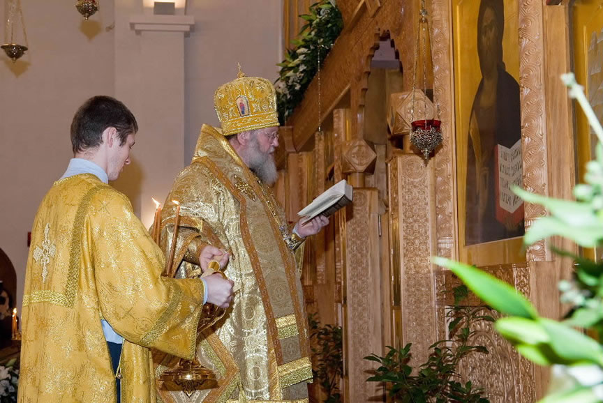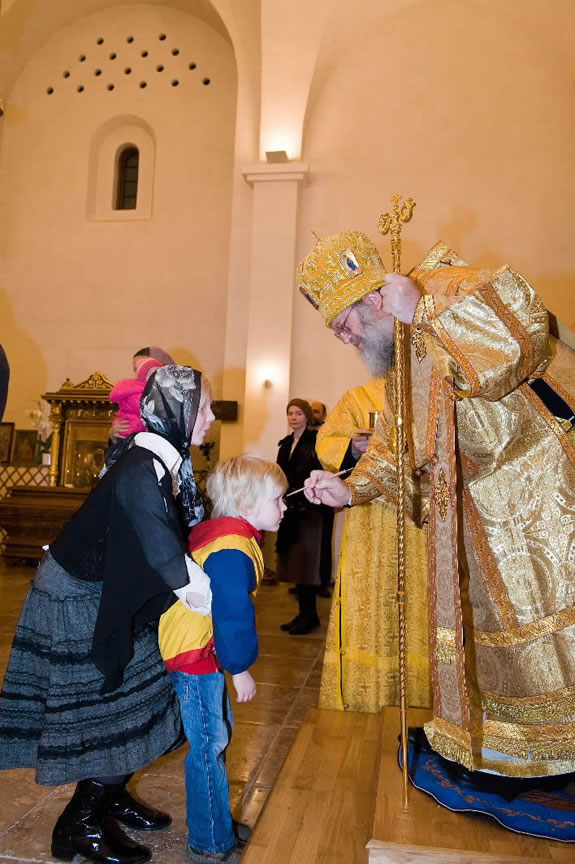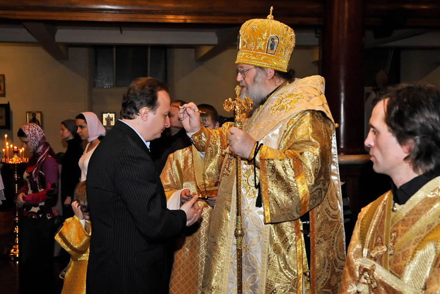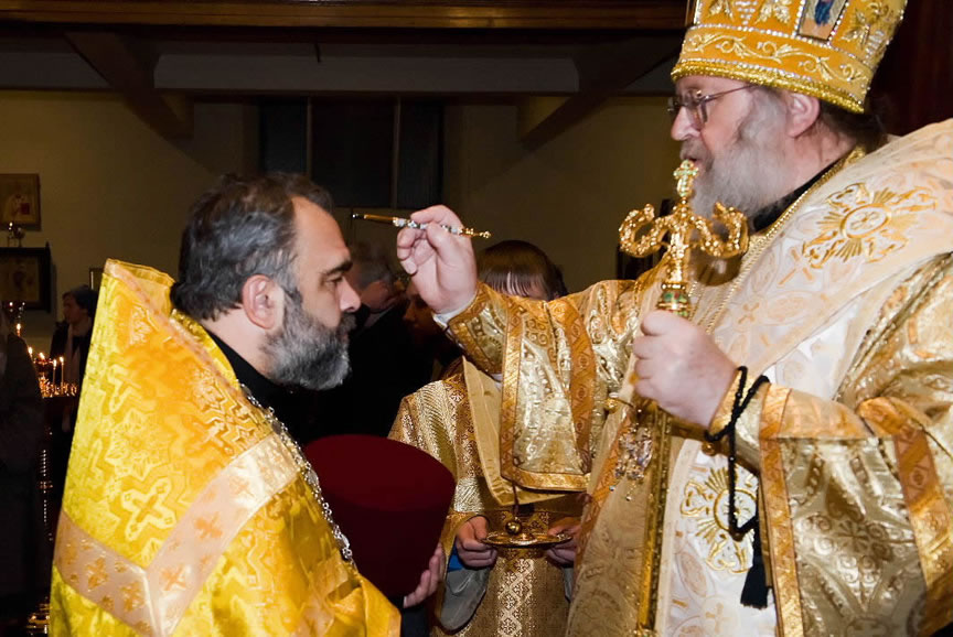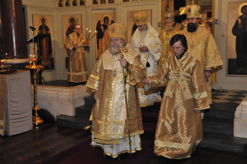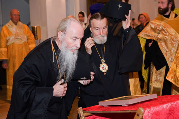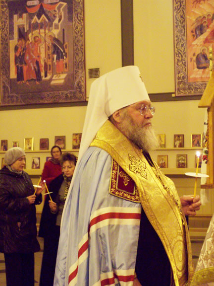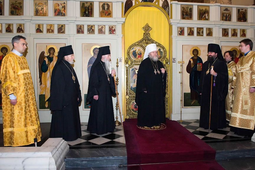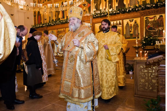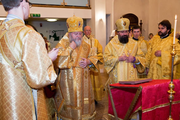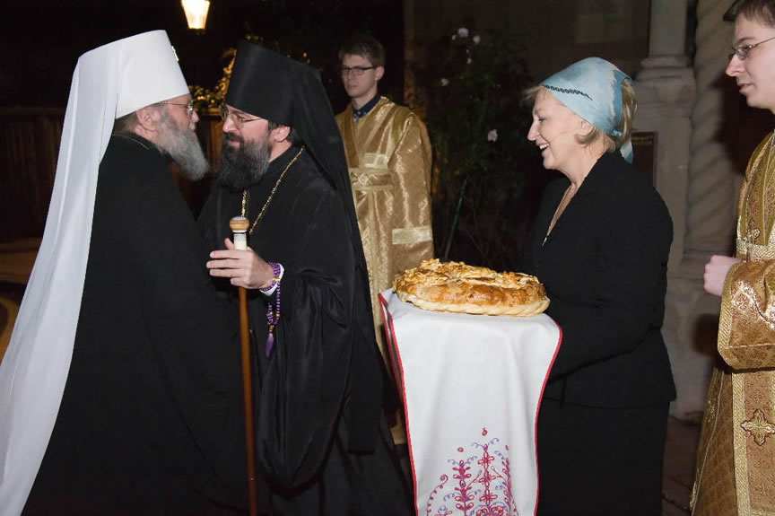 After the services, the Cathedral parish offered a festive luncheon. That evening, the hierarchs performed all-night vigil in Dormition Cathedral of the Sourozh Diocese, at the end of which Bishop Elisei hosted an evening reception in honor of the First Hierarch of the Russian Church Abroad. The next morning, Sunday, November 15, Metropolitan Hilarion celebrated Divine Liturgy at Nativity of the Mother of God Cathedral.