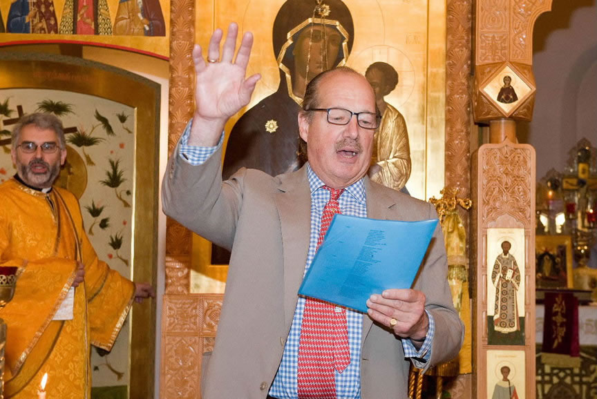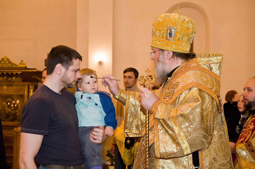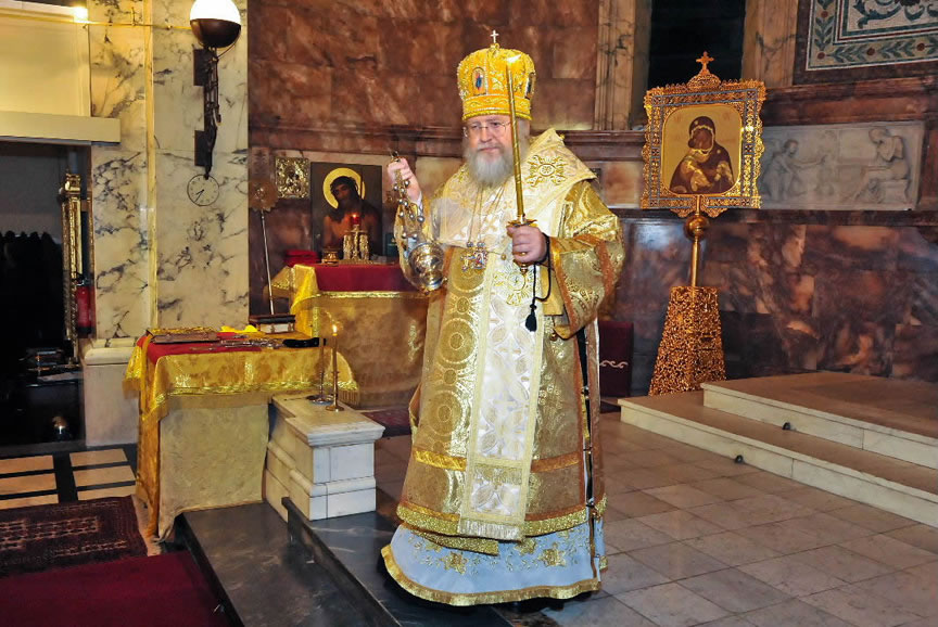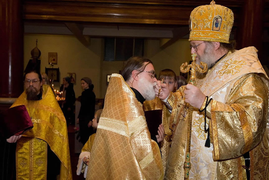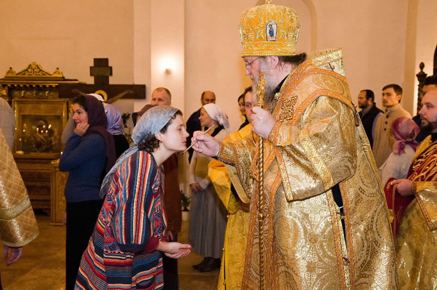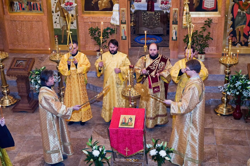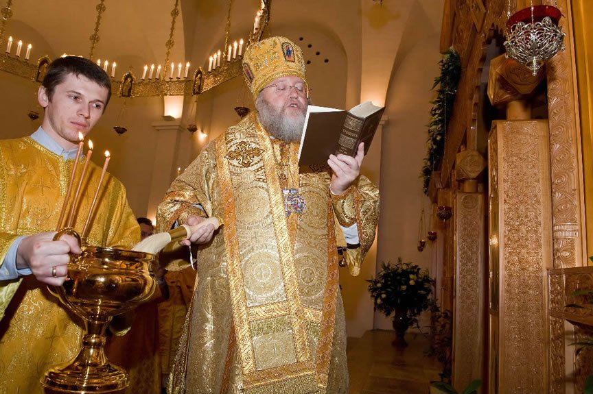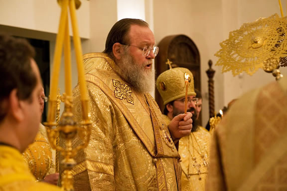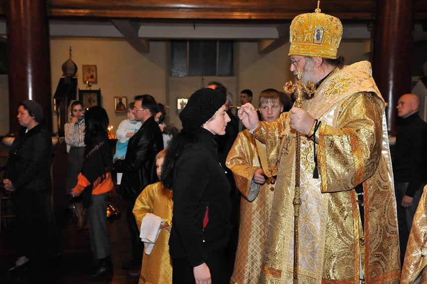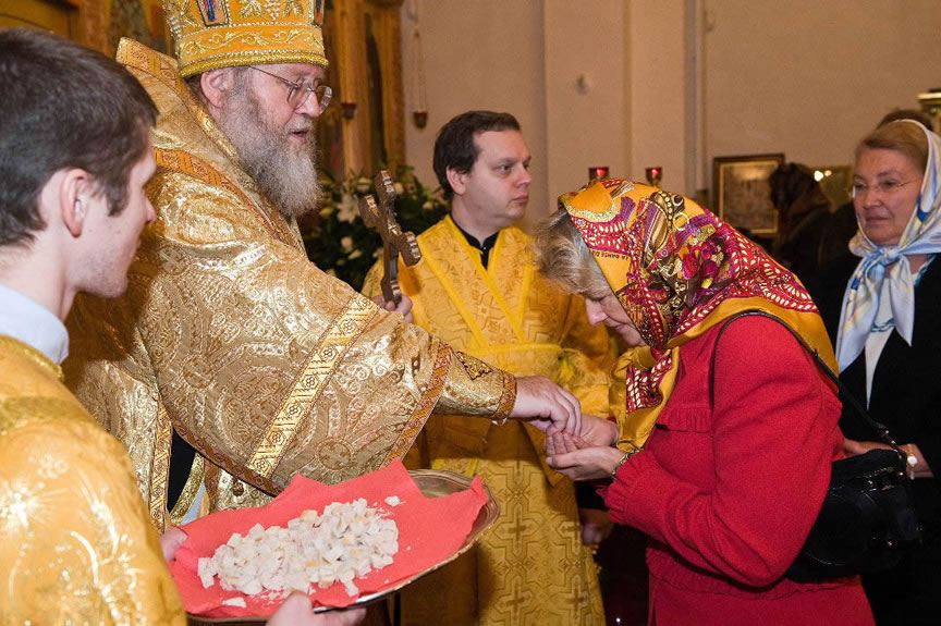 After the services, the Cathedral parish offered a festive luncheon. That evening, the hierarchs performed all-night vigil in Dormition Cathedral of the Sourozh Diocese, at the end of which Bishop Elisei hosted an evening reception in honor of the First Hierarch of the Russian Church Abroad. The next morning, Sunday, November 15, Metropolitan Hilarion celebrated Divine Liturgy at Nativity of the Mother of God Cathedral.