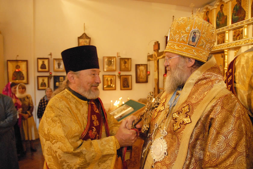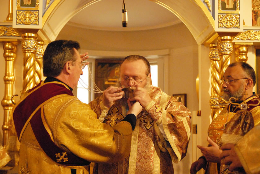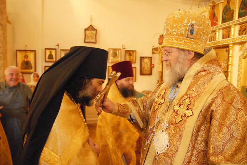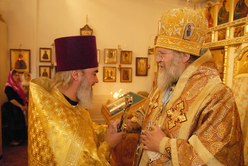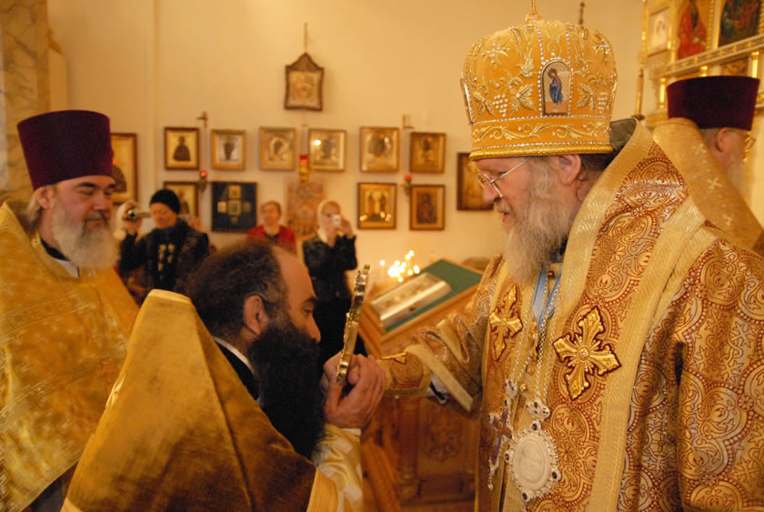 On November 3, 2009, the feast day of St Hilarion of the Kiev Caves, the Synodal Cathedral of Our Lady of the Sign in New York marked the namesday of His Eminence Metropolitan Hilarion. Vladyka Hilarion celebrated Divine Liturgy on this day along with His Grace Bishop Gabriel of Montreal and Canada, as well as his vicar bishops, His Grace Bishop George of Mayfield and His Grace Bishop Jerome of Manhattan, as well as clergymen of the diocese and visiting priests. At the end of divine services Vladyka Hilarion was given the highest honor of the Russian Orthodox Church Outside of Russia, the Kursk-Root Medal of the First Order, to mark the 25th anniversary of his archpastoral consecration. The parishes of the Eastern American Diocese also gave him gifts of a cross and panaghia. Afterwards, the participants of the celebration were offered an abundant trapeza luncheon, during which speeches were made honoring His Eminence.