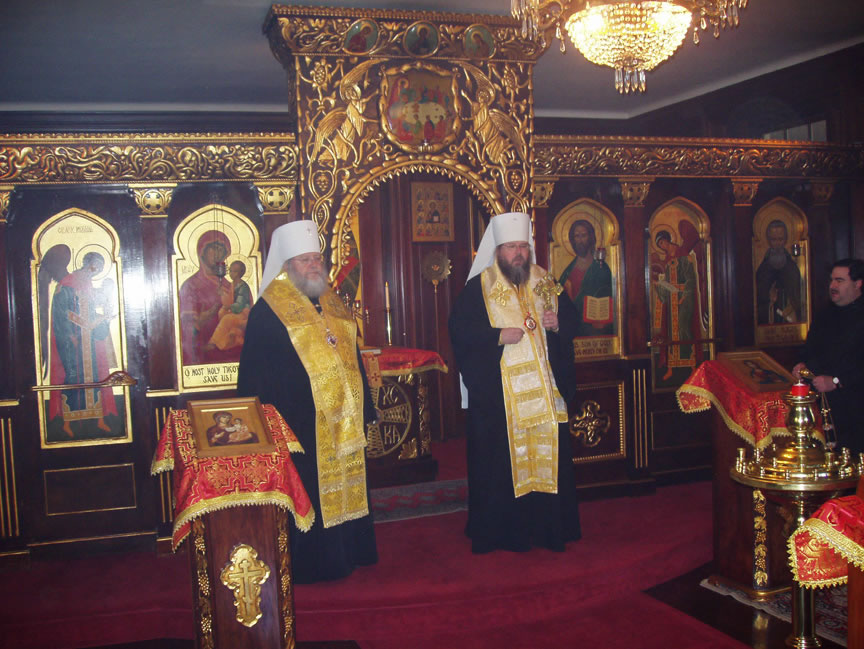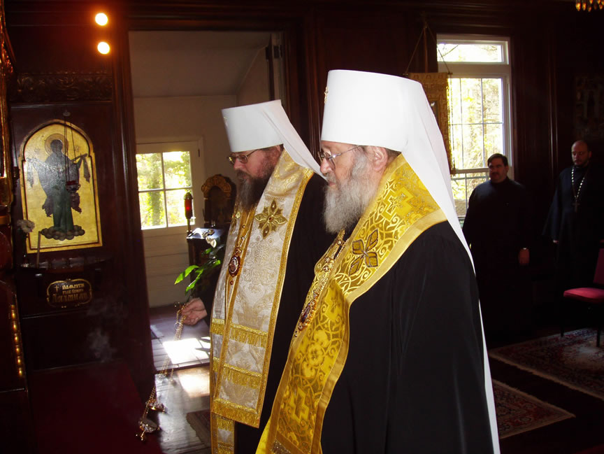 On Monday, November 16, 2009, His Eminence Metropolitan Hilarion met with His Beatitude Metropolitan Jonah at the Syosset, NY, headquarters of the Orthodox Church in America. Greeting the First Hierarch of the Russian Orthodox Church Outside of Russia at the main entrance, His Beatitude invited His Eminence to St Sergius of Radonezh church for a joint funerary litiya to commemorate His Holiness Patriarch Pavle of Serbia, who had died the day before. At the end of the service, His Beatitude Metropolitan Jonah noted that the entire Orthodox world considered the newly-reposed hierarch “a living saint,” and “a great spiritual leader of the 20th century.”