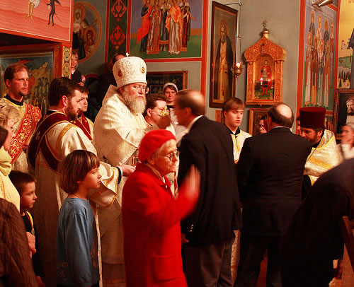 On Saturday, February 7, 2009, the eve of the feast day of the Holy New Martyrs and Confessors of Russia and the Sunday of the Publican and the Pharisee, His Eminence Metropolitan Hilarion, First Hierarch of the Russian Orthodox Church Outside of Russia, arrived in Boston. The Metropolitan was greeted with spring-like weather: after a deep freeze and drifting snows, a thaw set in. Bright sunshine echoed the joy in the hearts of the parishioners and worshipers of Epiphany Church. Before his appointment to the Australian Diocese, Vladyka Hilarion often visited Epiphany Church as Bishop of Manhattan, so the senior parishioners greeted him as an old, dear friend. The many new members of the parish family, mostly recent emigres from Russia and its “near abroad,” met Vladyka Hilarion for the first time. Everyone without exception greeted Vladyka as a loving father.