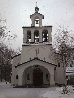 Upon the conclusion of the Liturgy, a moleben was performed in the memory of all those who perished during the years of persecution of the faith in Christ. Unfortunately, the bad weather prevented a procession of the cross from being held. However, the peal of 13 bells, made in Romano-Borisoglebsk (near Yaroslavl, Russia), rang throughout the neighborhood of the church, originally an American Protestant church rebuilt in the old Russian style in the mid-1990's.