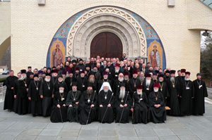 Representatives of the parish clergy and laity of the Eastern American Diocese, having gathered on March 16-18, 2009, for a Regular Diocesan Assembly, under the holy aegis of the relics of the Lord’s Life-Creating Cross, His Raiment, and His Life-Creating Tomb, under the sacred canopy of St Vladimir’s Memorial Church dedicated to the Millennial Celebration of the Baptism of Russia, and under the presidency of His Eminence Hilarion, Metropolitan of Eastern America and New York, raised up their prayers to the Lord of Hosts for the repose of the souls of His Holiness Patriarch Alexy, and His Eminence Metropolitan Laurus, the latter having passed away on March 16 of last year, on the Sunday of the Triumph of Orthodoxy, and of those builders of this majestic church here buried: Archbishops Vitaly (Maximenko; +1960) and Nikon (Rklitsky; +1976). Our meeting opened with the serving of a pannikhida for these departed hierarchs, led by our First Hierarch and concelebrated by Bishop Mercurius, Administrator of the Patriarchal Parishes in the United States, Bishop George of Mayfield, and Bishop Jerome of Manhattan.