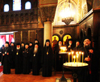 On May 14, 2009, Metroplitan Amfilohije officiated at Divine Liturgy before the beginning of the Council of Bishops of the Serbian Orthodox Church. He was joined by His Grace Bishop Irinej of Nis; His Grace Bishop Lukijan of Osecko polje and Baranja; His Grace Bishop Irinej of Australia and New Zealand; His Grace Bishop Teodosije of Lipljan, Vicar of the Diocese of Ras and Prizren, and also Fr Nikolai and other clergymen of the Serbian Church. Archbishop Mark prayed in the altar and communed of the Holy Gifts. The visitors from the Russian Orthodox Church then attended a moleben, during which the Holy Spirit was invoked upon the members of the Council of Bishops, which was performed by Bishop Irinej in the Chapel of St Simeon the Myrrh-gusher at the Patriarchal Palace.