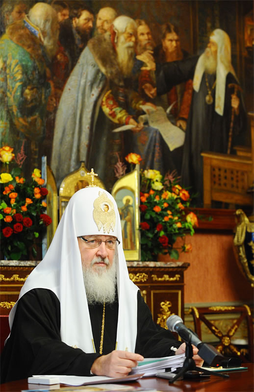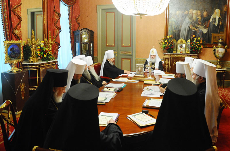 The Holy Synod of the Russian Orthodox Church met in Moscow on October 6, 2010. In his keynote address, His Holiness Patriarch Kirill of Moscow and All Russia noted that this is the first time that a Primate of the Russian Orthodox Church Outside of Russia participates in a regular session of this body. "This bears witness to the fact that the process set in motion by the signing of the Act of Canonical Communion is developing, and, with God's aid, will continue in the future," said the Primate of the Russian Orthodox Church. |