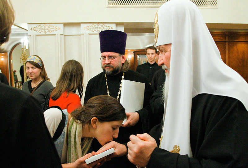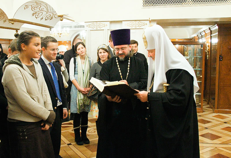 On December 26, 2010, following divine services at Christ the Savior Cathedral in Moscow, His Holiness Patriarch Kirill of Moscow and All Russia met with a delegation of young people from the Russian Orthodox Church Outside of Russia. The delegation is led by the Vice President of the Synodal Youth Department, Protopriest Andrei Sommer.