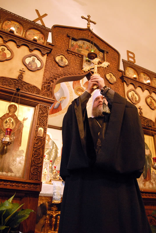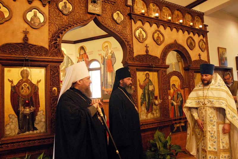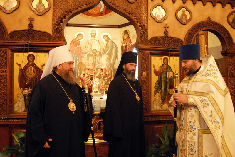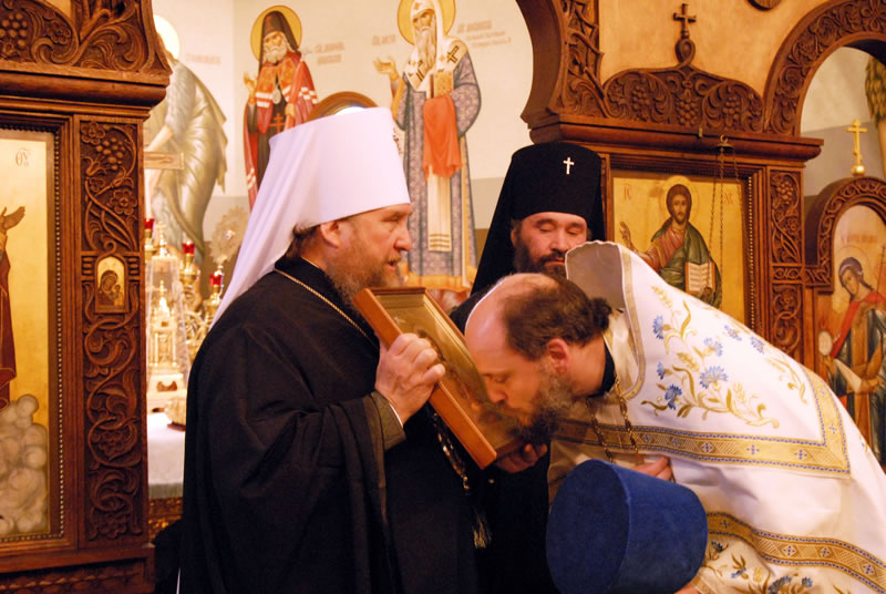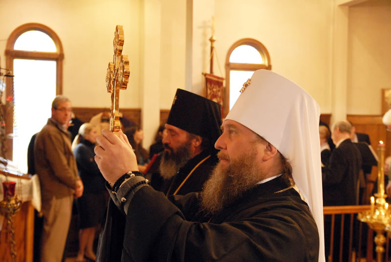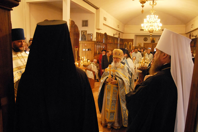 On Saturday, December 11, 2010, His Eminence Metropolitan Alexander of Astanai and Kazakhstan and His Eminence Archbishop Justinian of Naro-Fominsk, head of the Patriarchal Parishes in the USA, celebrated Divine Liturgy at St Seraphim Church in Sea Cliff, NY, on the occasion of the 90th anniversary of the Russian Orthodox Church Outside of Russia. Their Eminences were joined by Protopriest Michael Protopopoff, Administrator of the Diocese of Australia and New Zealand; Protopriest Victor Tseshkovsky of the New Kursk-Root Hermitage in Mahopac, NY and auxiliary priest of the Church of the Holy New Martyrs and Confessors of Russia in Brookly, NY; Protopriest Serafim Gan, Rector of St Seraphim Church; Hegumen Veniamin (Korolev), Prior of Kursk-Root Hermitage of the Kurks Diocese in Russia; Protopriest Sergei Lukianov, Secretary of the Diocese of Eastern America and New York; Protopriest Andrei Sommer, Senior Priest of the Synodal Cathedral of Our Lady “of the Sign”; Protopriest Evgeny Goncharenko; Hegumen Nikodim (Baslyanikov), aide to Archbishop Justinian; Hieromonk Roman (Krassovsky) of Holy Trinity Monastery, and Priest Alexandre Antchoutine of neighboring Intercession Church, along with Protodeacon Paul Wolkoff, Protodeacon Igor Panachev, Deacon Nicholas Olhovsky and Deacon Eugene Kallaur. The wonder-working Kursk-Root Icon of the Mother of God was present at the service.