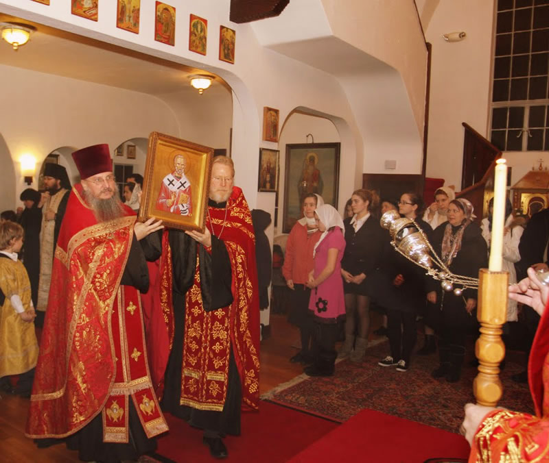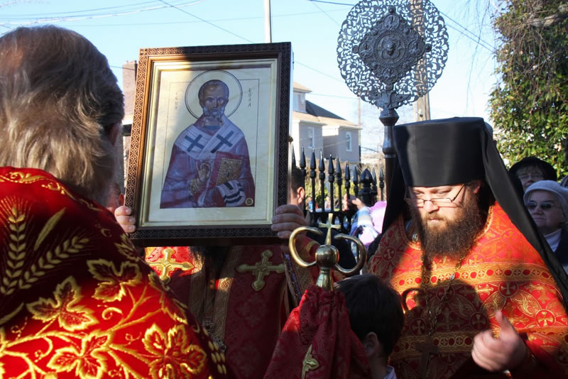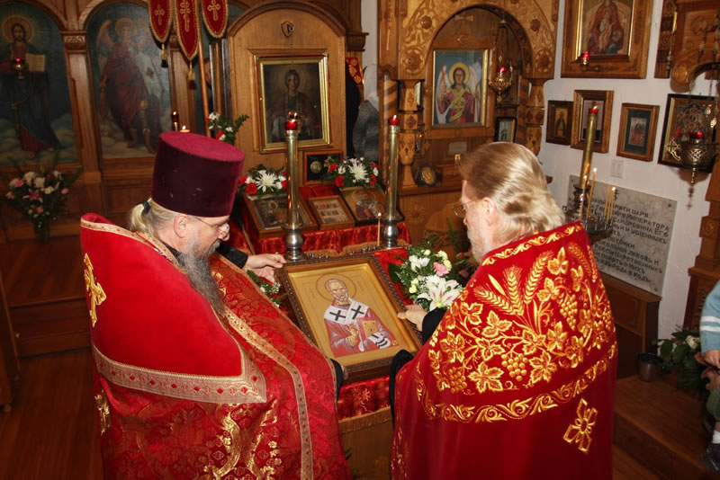 On Sunday, December 19, 2010, the feast day of St Nicholas the Wonder-worker, Archbishop of Myra, His Grace Bishop Theodosius of Seattle, Vicar Bishop of the Western American Diocese of the Russian Orthodox Church Outside of Russia, celebrated Divine Liturgy at St Nicholas Cathedral in Seattle, WA. He was joined in the service by Protopriest Alexei Kotar, Protopriest Nicholas Dalinkevich of Holy Protection Cathedral in Melbourne, Australia, and local clergymen. After the service, a moleben was served before an icon of St Nicholas containing a portion of his relics, followed by a procession of the cross around the cathedral.
