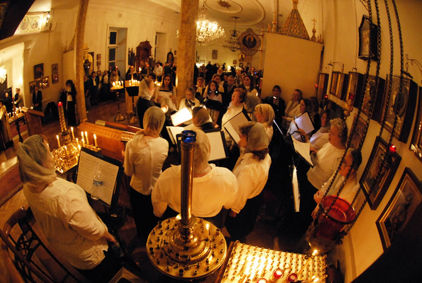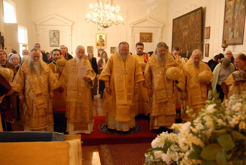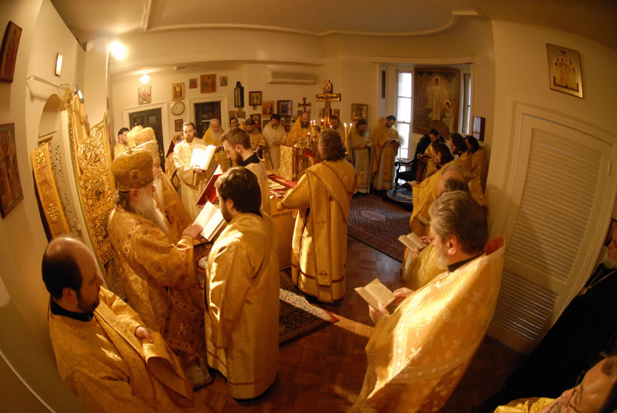 On February 9, 2010, the feast day of St John Chrysostom, the members of the Synod of Bishops of the Russian Orthodox Church Outside of Russia prayed at Divine Liturgy, and at all-night vigil the evening before. A regular session of the Synod of Bishops then commenced, which will continue until Thursday, February 11. We offer our readers photographs of the events.
