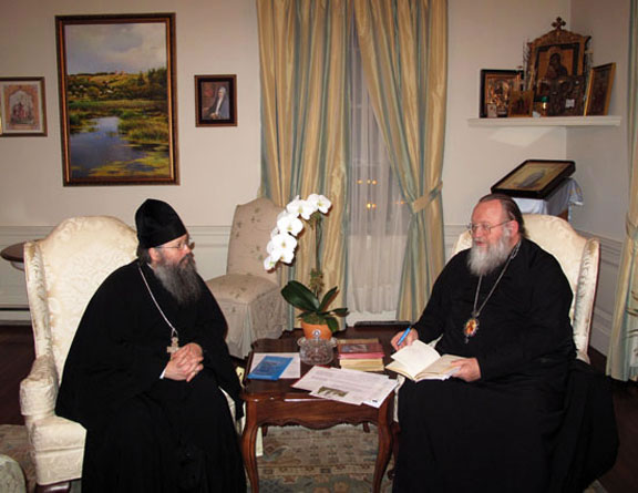 On Tuesday evening, March 10, 2010, Archimandrite Zacchaeus, Representative of the Orthodox Church in America to the Moscow Patriarchate, traveled to the main administrative building and official residence of the First Hierarch of the Russian Orthodox Church Abroad in New York City to meet with His Eminence Metropolitan Hilarion of Eastern America and New York.