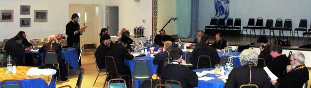 The Holy Virgin Protection Cathedral hosted this year's Pastoral Conference on the 4th week of the Great Fast (March 8-9, 2010). Clergy from parishes throughout the diocese arrived late in the evening on the Sunday of the Cross and gathered at a reception that was hosted at His Grace, Bishop Peter's residence. The conference officially began on the next day with a molieben service. Following a light breakfast prepared by the cathedral Sisterhood, Bishop Peter greeted the gathered clergy and presented a report on Diocesan Activities since the prior Fall Pastoral Retreat.
