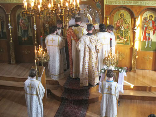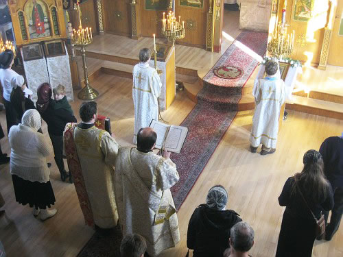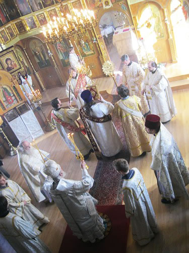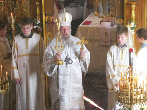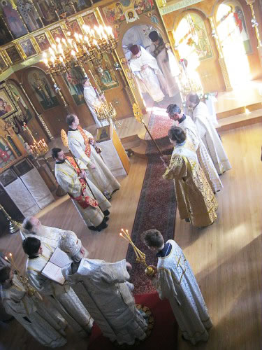 On January 19, 2011, Epiphany Parish in Boston marked their feast day, drawing, as always, an enormous number of worshipers. The following Saturday and Sunday, January 22-23, His Grace Bishop Jerome of Manhattan, Vicar of the Eastern American Diocese, officiated at divine services here. During Divine Liturgy celebrated by His Grace, Priest Victor Boldewskul, successor to the parish rectorship from the late Protopriest Roman Lukianov, was elevated to the rank of protopriest. Photographs of this event follow.