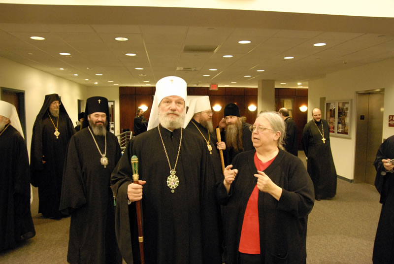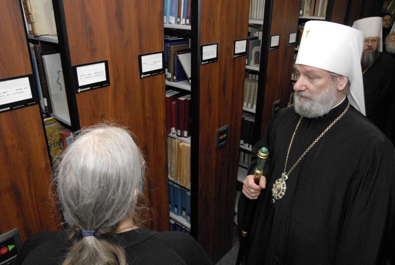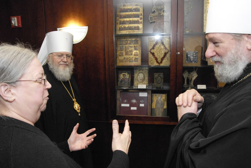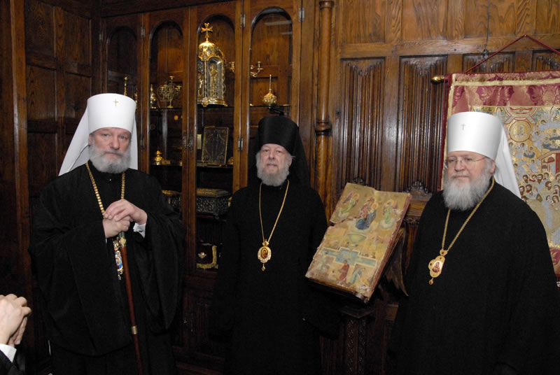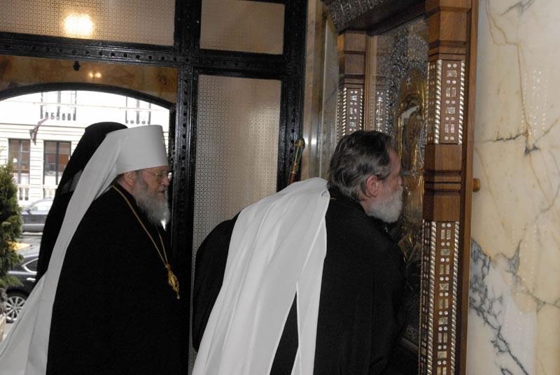 On February 28, 2011, after praying at Divine Liturgy at the Synodal Cathedral of Our Lady “of the Sign” at the residence of His Eminence Metropolitan Hilarion, First Hierarch of the Russian Orthodox Church Outside of Russia, His Beatitude Metropolitan Christopher of the Czech Lands and Slovakia visited the New York headquarters of the Greek Orthodox Archdiocese of America. There he met with His Eminence Archbishop Demetrios.