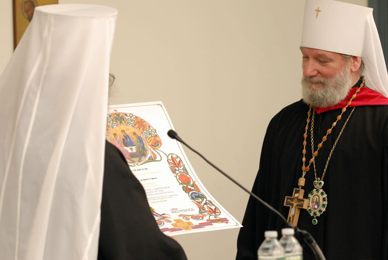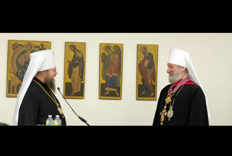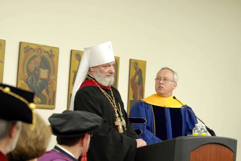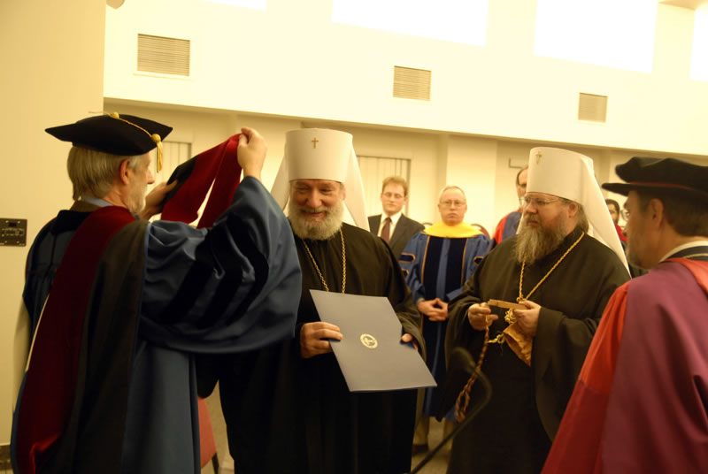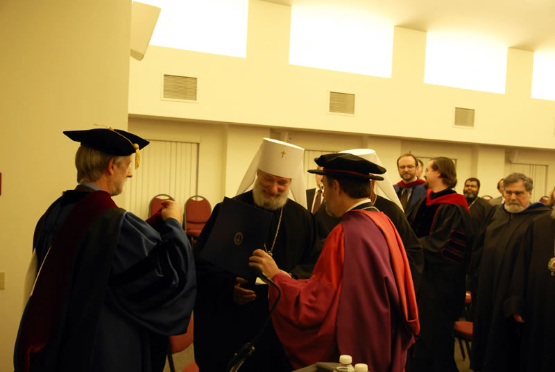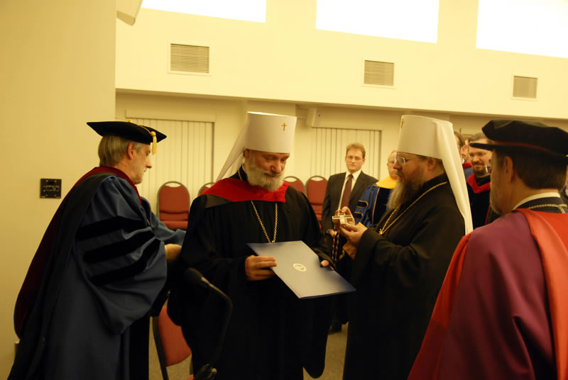 His Beatitude then visited St Vladimir Orthodox Theological Seminary of the Orthodox Church in America, where he was given an Honorary Doctorate in Theology. After the ceremony, His Beatitude Metropolitan Jonah, the Primate of the COA, gave Metropolitan Christopher the Order of St Innocent.