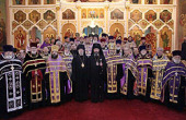 On the evening of March 4, 2012, at SS Peter and Paul Cathedral in Passaic, NJ, His Eminence Archbishop Justinian, Administrator of the Patriarchal Parishes in the USA, and His Grace Bishop Jerome of Manhattan of the Russian Orthodox Church Outside of Russia officiated at vespers and the celebration of the Rite of Orthodoxy. Over fifty clergymen from parishes of the Moscow Patriarchate, Russian Church Abroad and Orthodox Church in America participated. The divine service gathered a great number of worshipers from various parishes in New Jersey, New York and Pennsylvania. Attending vespers were members of the Ataman Council of the Congress of Russian Americans, headed by Ataman Alexei Mikhailovich Kagantsev and his spiritual father, Priest Alexei Bocharnikov.