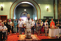 Metropolitan Hilarion was joined in the service by the rector of the Orthodox Christian community in Shanghai, Protopriest Alexi Kiselevich. Assisting during the service were Vasili Ou and Alexander Yui, members of the Chinese Orthodox community of Harbin, who will begin a study of religious schools of the Russian Orthodox Church in September, in accordance with a memorandum signed between the Council on Religious Relations of the President of the Russian Federation and the State Administration on Religious Affairs of the PRC.
