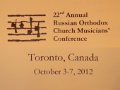 On October 3-7, 2012, the XXII All-Diaspora Church Music Conference was held in Toronto, Canada. Guests from Moscow, Saint-Petersburg and Sergiev Posad took part in the work of the forum that gathered 75 choir directors and singers from the church choirs of Russian diaspora. The conference was organized by the Church Music Committee at the Synod of Bishops of the Russian Orthodox Church Outside of Russia.
