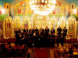 Thirty-seven-year-old Peter Gudkov, family man, father of two daughters, singer and soloist of Sretensky Monastery Mens’ Choir of Moscow, fell gravely ill and is in need of a bone-marrow transplant, which will cost over $150,000. Participating in the event were the Archbishop’s Choir of Holy Virgin Protection Cathedral in Chicago, IL, under the direction of Michael Gill, and the Branko Radicevic Serbian Cathedral Choir under Elizaveta Neskova. The concert was blessed by His Grace Bishop Peter of Cleveland, by the initiative of parishioners and singers of Holy Virgin Protection Cathedral and the support of their Serbian Orthodox brothers and sisters. Present at the concert were His Grace Bishop Longin of New Gracanica (Serbian Orthodox Church), His Grace Bishop Nicolae (Romanian Orthodox Church) and Serbian Consul General Desko Nikitovic in Chicago.