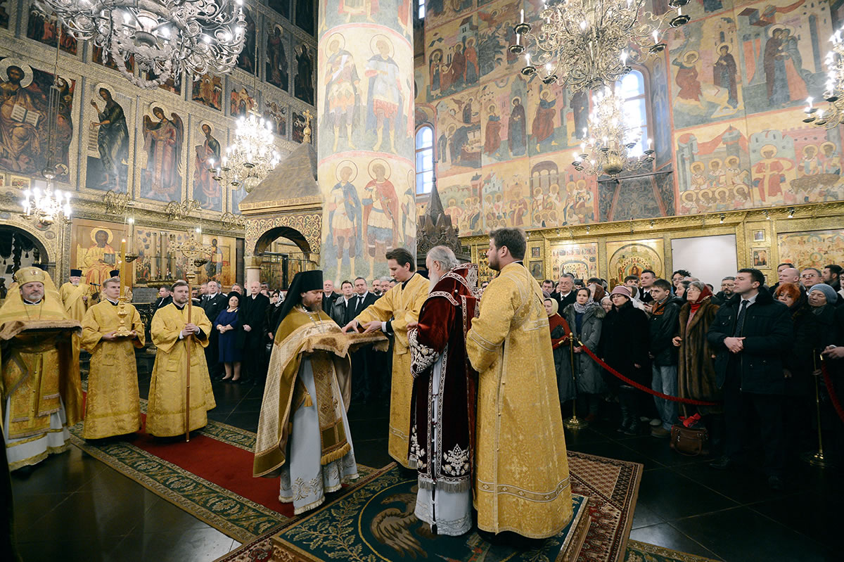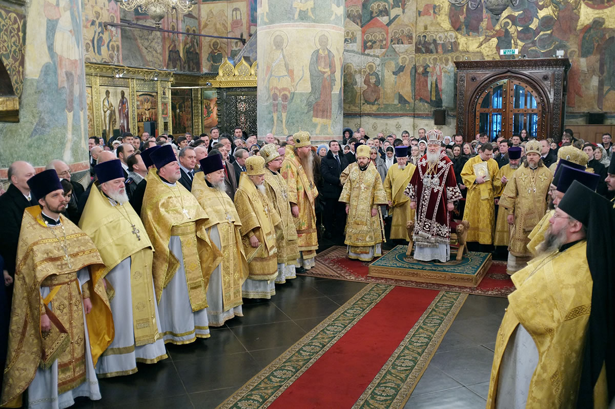 On March 6, 2013, His Holiness Patriarch Kirill of Moscow and All Russia celebrated Divine Liturgy at the Kremlin’s Uspensky Cathedral in Moscow on the 400th anniversary of the election of Mikhail Feodorovich Romanov to the Russian throne.