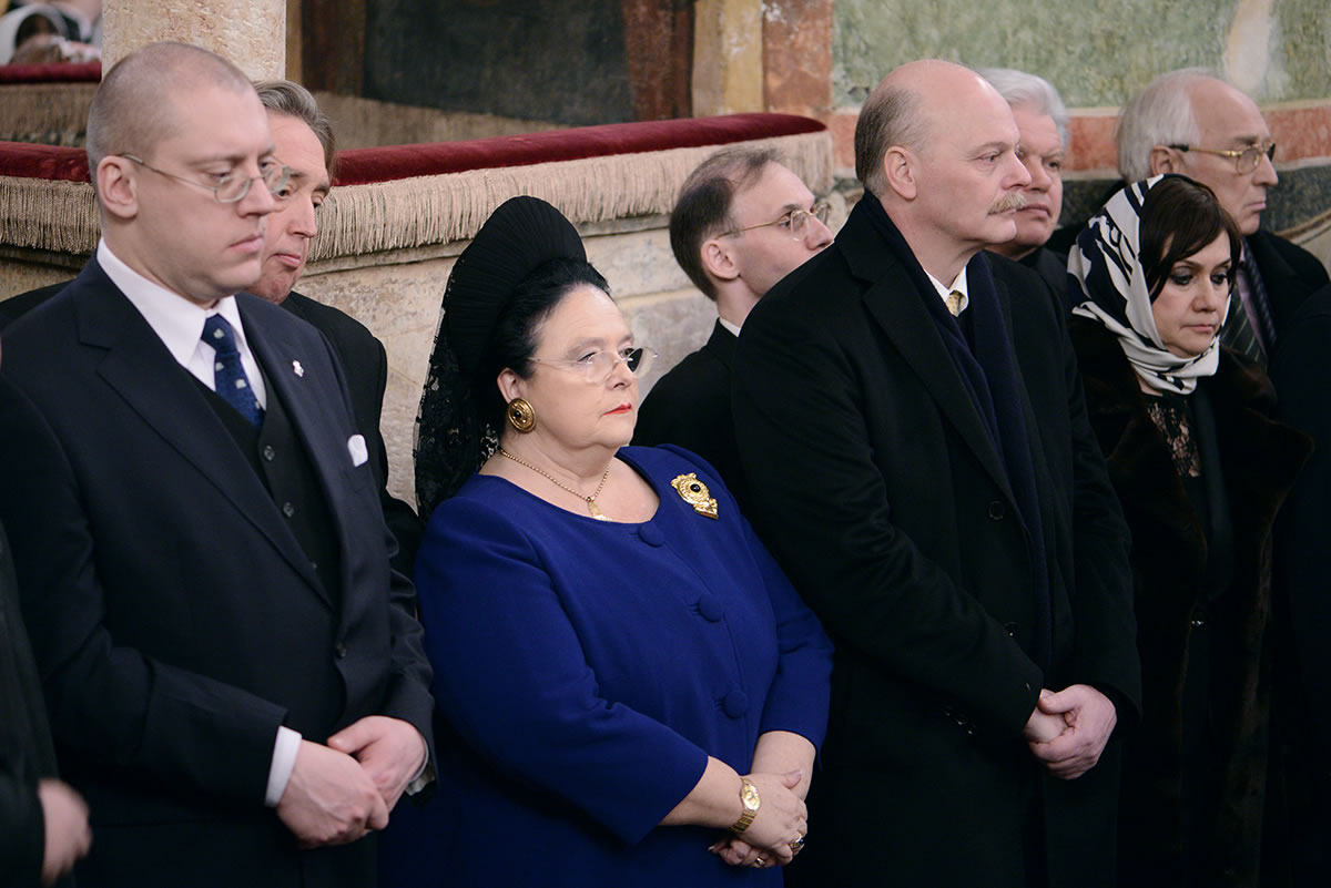 Attending the service was the Head of the Romanov House, Grand Duchess Maria Vladimirovna; great-great-grandson of Emperor Alexander III, Pavel Edvardovich Kulikovsky; Prince Gregory Gagarin, Head of the Russian Nobility Assembly; and Mikhail Markelov, Chief Deputy of the State Duma of the Russian Federation on Social Unions and Religious Organizations.