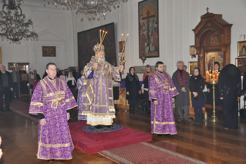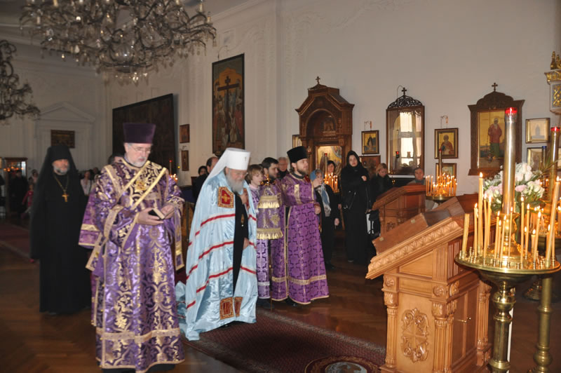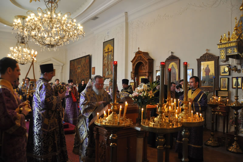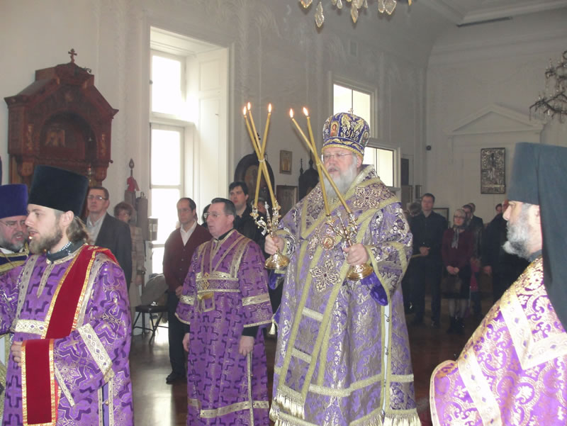 On Sunday, March 24, 2013, the Sunday of the Triumph of Orthodoxy, His Eminence Metropolitan Hilarion of Eastern America and New York, First Hierarch of the Russian Orthodox Church Outside of Russia, officiated at Divine Liturgy at the Synodal Cathedral of Our Lady “of the Sign.” His Eminence was joined by Protopriest Andrei Sommer, Senior Priest of the Cathedral; Hieromonk Nicholas (Perekrestov); Priest Nicholas Olhovsky, caretaker of the Kursk-Root Icon of the Mother of God "of the Sign"; Hieromonk Evtikhy (Dovganiuk); along with Protodeacon Nicolas Mokhoff and Hierodeacon Tikhon (Gayfudinov).