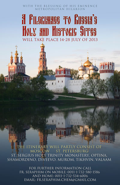 With the blessing of His Eminence Metropolitan Hilarion of Eastern America and New York, Priest Seraphim Chemodakov of st Alexander Nevsky Cathedral in Lakewood (Howell), NJ, will lead a pilgrimage to the holy sites of Russia from July 13-28, 2013.