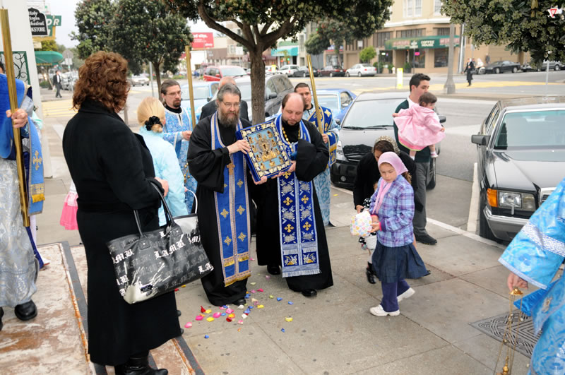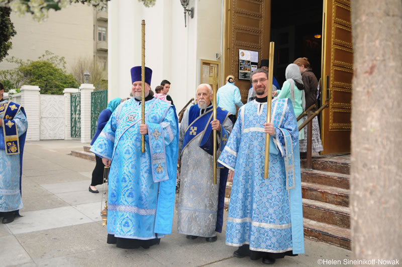 On Tuesday, April 2, 2013, the clergymen and flock of the Western American Diocese of the Russian Orthodox Church Outside of Russia, headed by His Eminence Archbishop Kyrill of San Francisco and Western America, and His Grace Vicar Bishop Theodosius of Seattle, solemnly and ceremoniously greeted the main holy icon of the Russian diaspora, the Kursk-Root Icon of the Mother of God "of the Sign,” brought by its caretaker, Priest Nicholas Olhovsky.