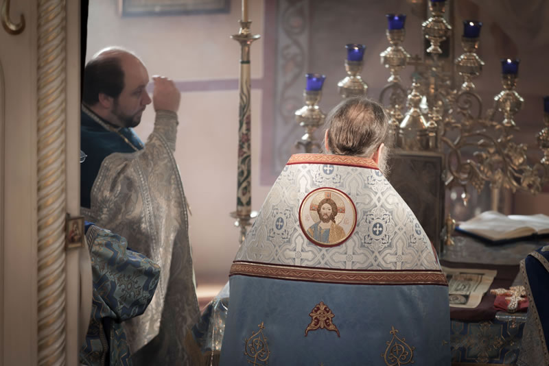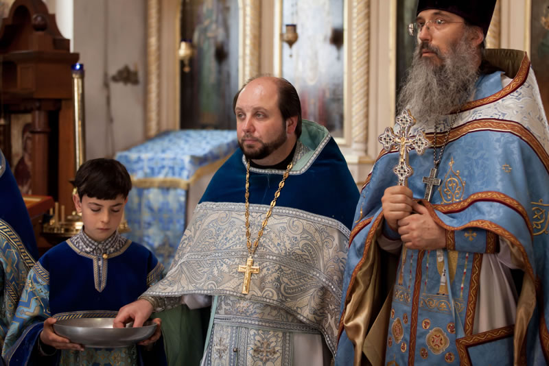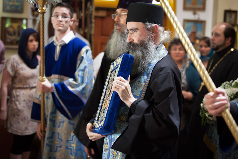 On Sunday, April 21, 2013, the Fifth Sunday of Great Lent, Protopriest Paul Volmensky of Sacramento, CA, ceremoniously greeted the Hodigitria (Protectress) of the Russian diaspora, the Kursk-Root Icon of the Mother of God "of the Sign" and its caretaker, Priest Nicholas Olhovsky, after which he celebrated Divine Liturgy of St Basil the Great together with Fr Nicholas and the parish clergymen. A large gathering of parishioners of Holy Ascension Church and other worshipers were in attendance as well. Fr Paul and Fr Nicholas then visited numerous homes of Russian Orthodox Christians living in the state capital and its environs, performing molebens to the Most-Holy Mother of God, and blessing their abodes.