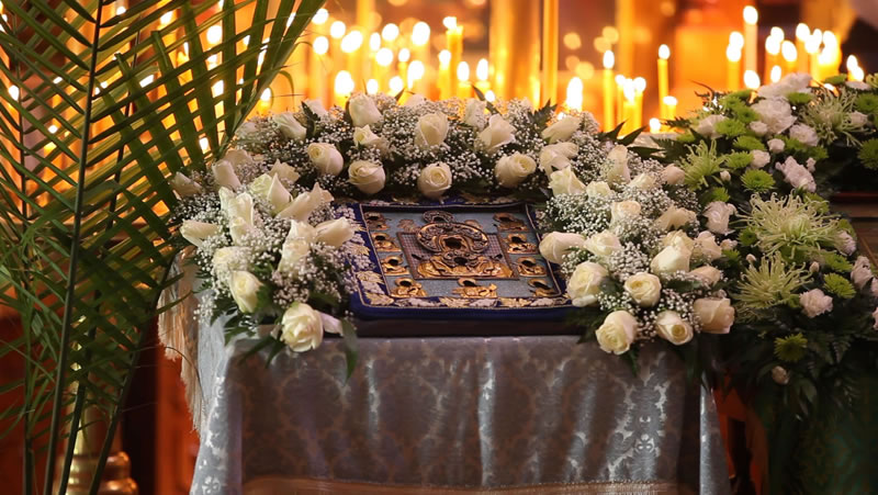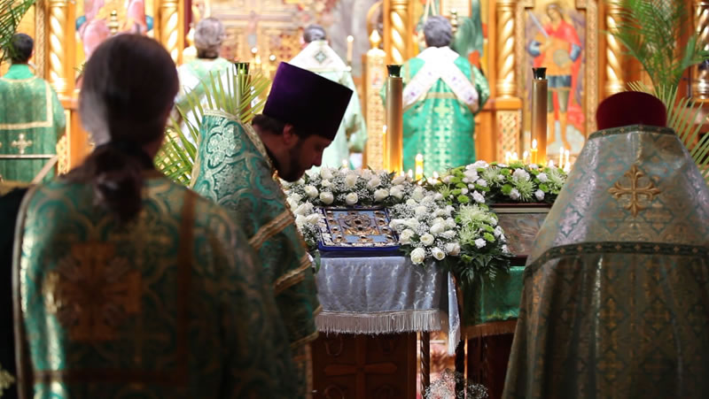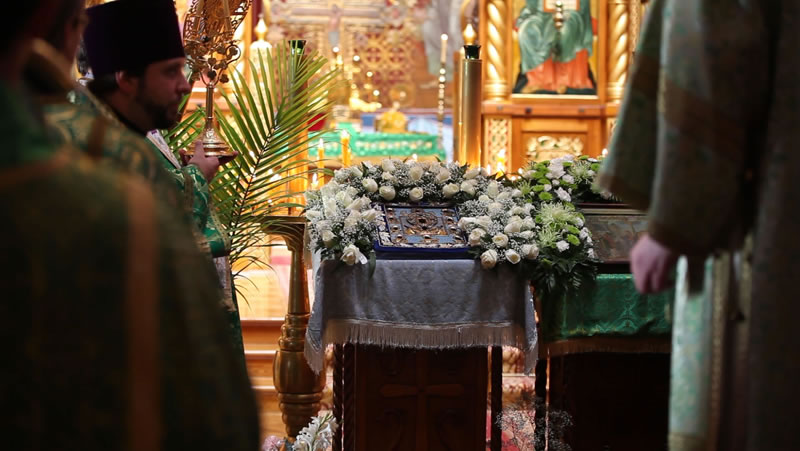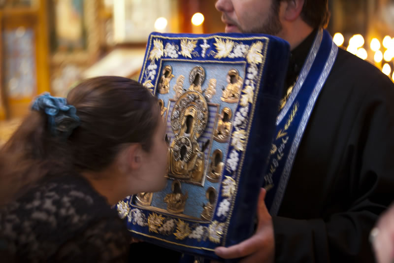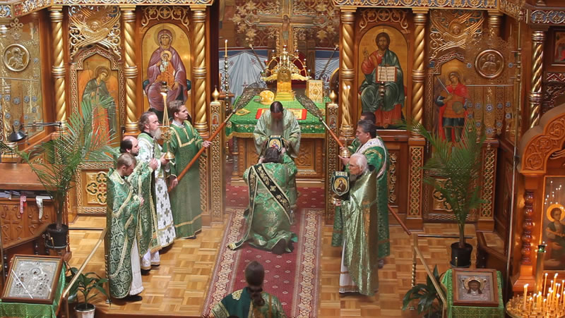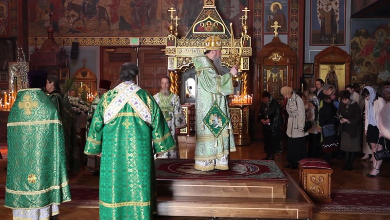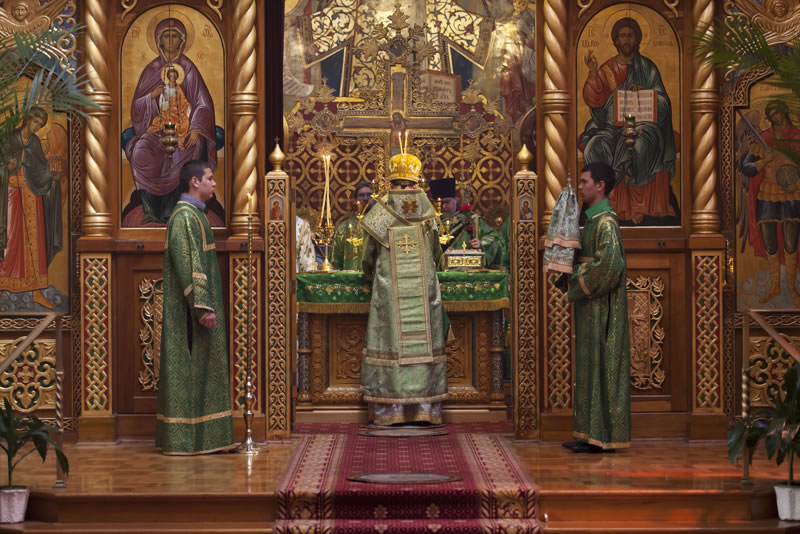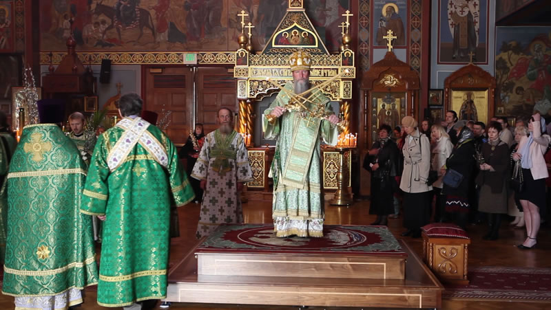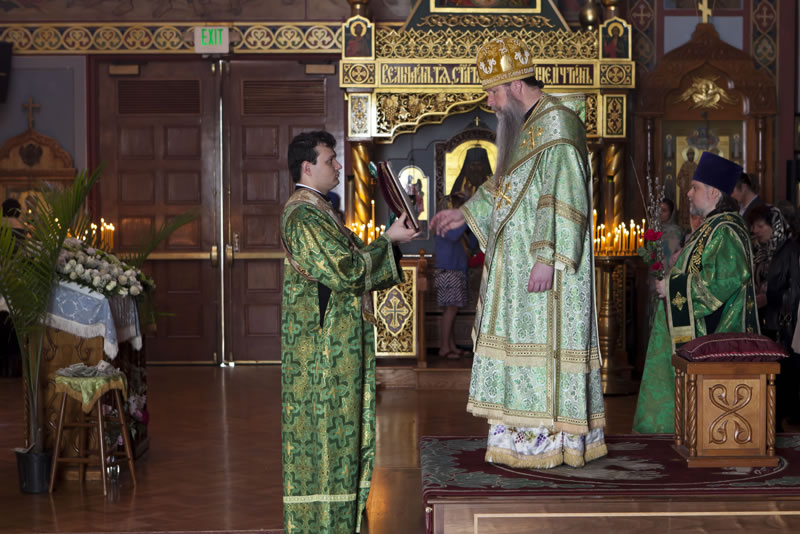 On Sunday, April 30, 2013, the feast day of the Entrance of the Lord into Jerusalem, His Eminence Archbishop Kyrill of San Francisco and Western America celebrated Divine Liturgy at the Cathedral of the Mother of God “Joy of All Who Sorrow” in San Francisco. The Kursk-Root Icon of the Mother of God “of the Sign” was present at the service.