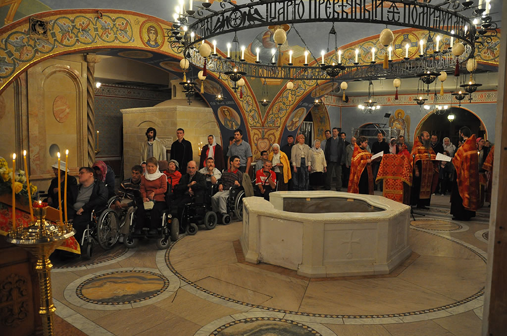 Parishioners of Protection Church and the Church of SS Peter and Paul in Yasenevo were in attendance, as well as a number of handicapped people living in Veteran’s Home No. 6, who were transported by an Orthodox youth brotherhood known as Pokrov [“protection”].