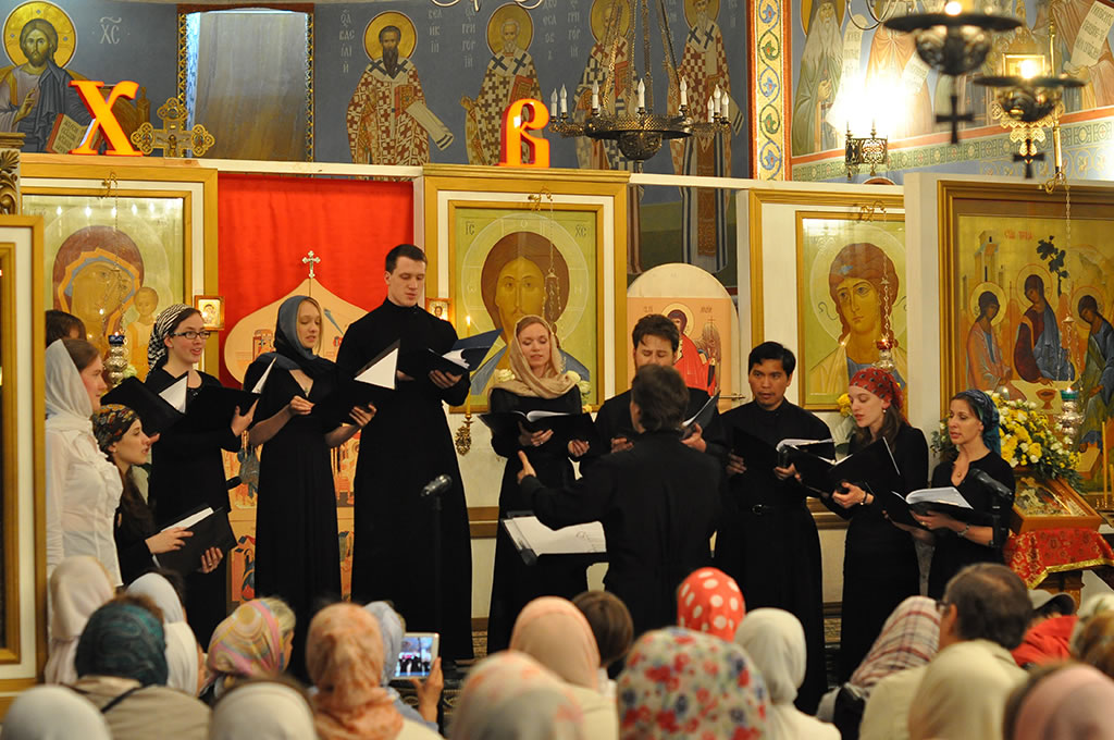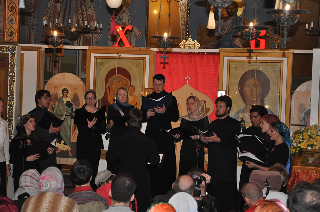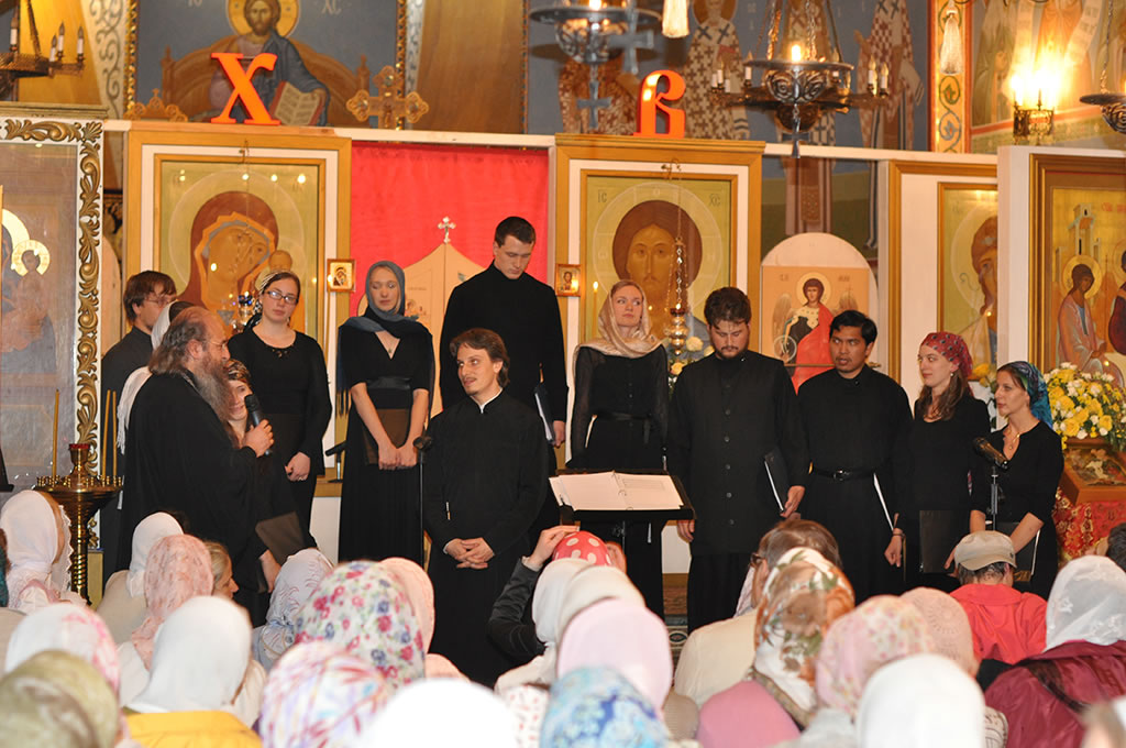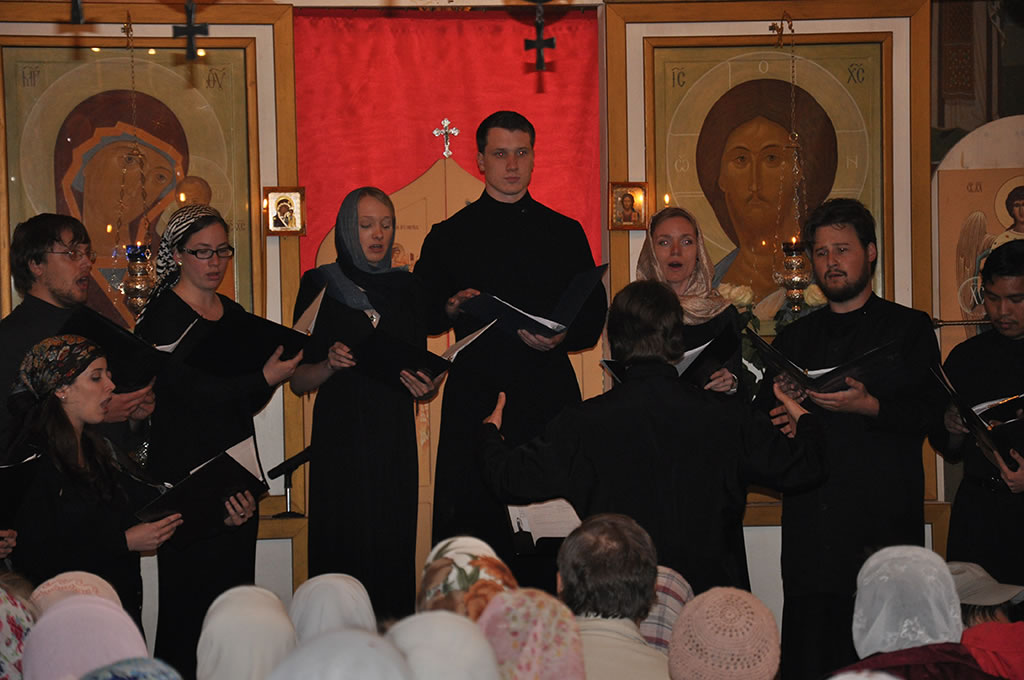 On Sunday, May 26, 2013, after evening divine services in the Church of the Protection of the Mother of God, a combined youth choir of singers of the Russian Orthodox Church Outside of Russia, led by seminarian Nicholas Kotar of Holy Trinity Seminary in Jordanville, NY, gave a performance.