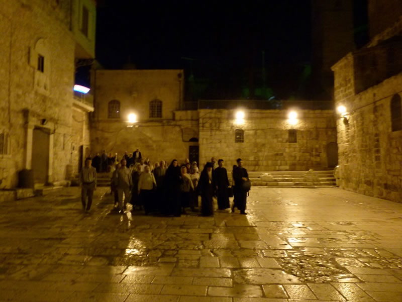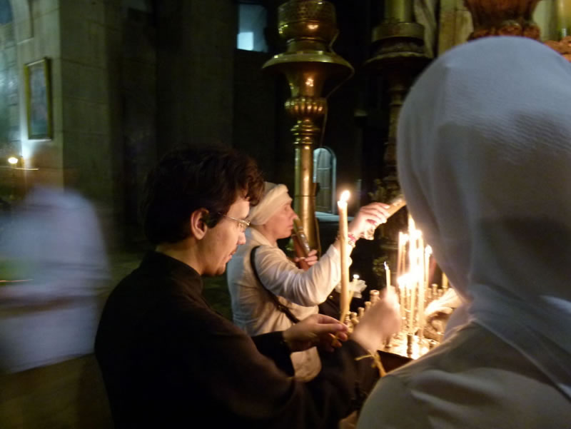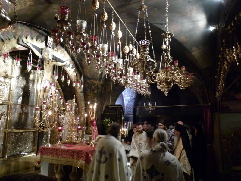 On the night of Thursday to Friday, May 30-31, 2013, a group of pilgrims from the German Diocese of the Russian Orthodox Church Outside of Russia, headed by His Eminence Archbishop Mark of Berlin and Germany, participated in a moving Divine Liturgy celebrated at Golgotha. In accordance with established tradition, every Friday , Divine Liturgy at the Church of the Resurrection of Christ in the Holy City is celebrated specifically at Golgotha, the very site of the Crucifixion and Sacrifice of our Lord Jesus Christ.