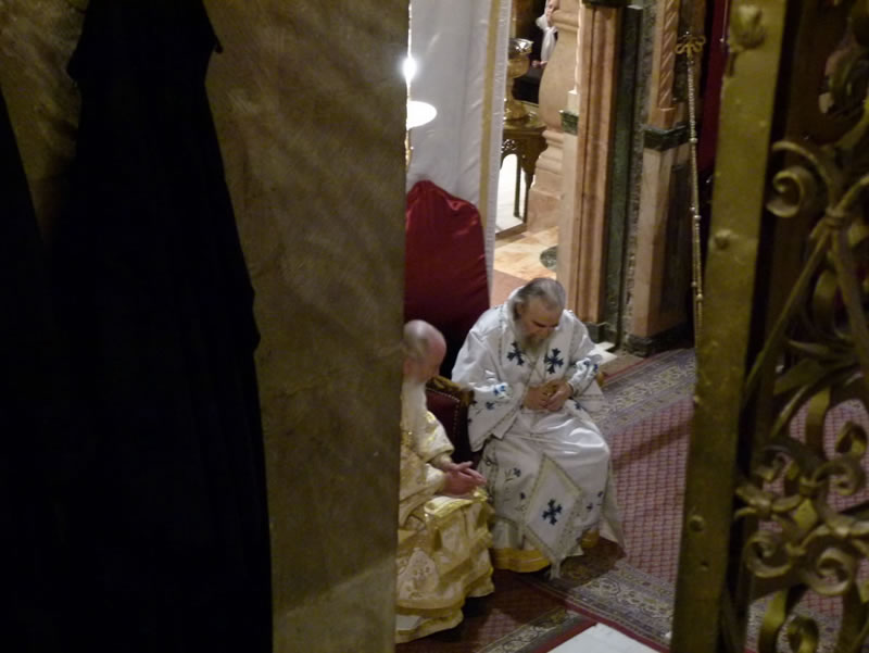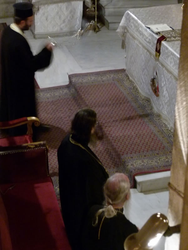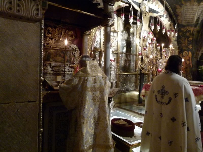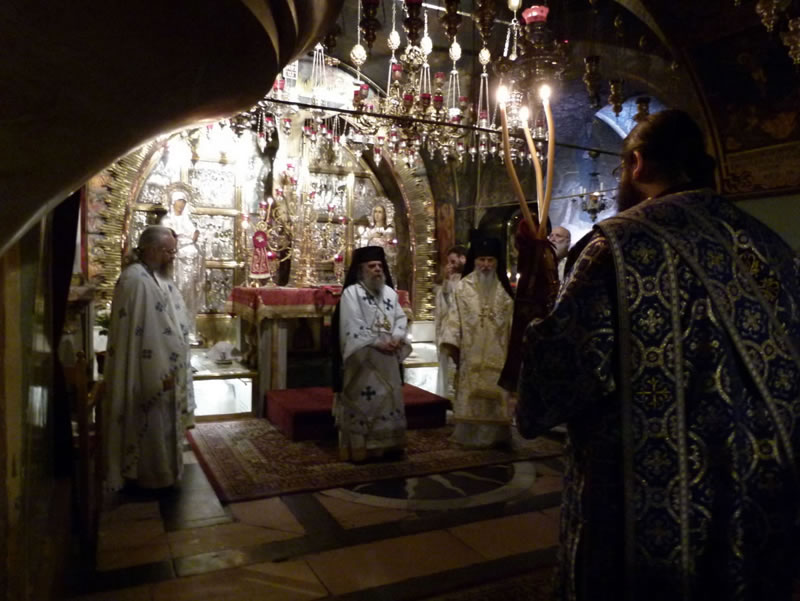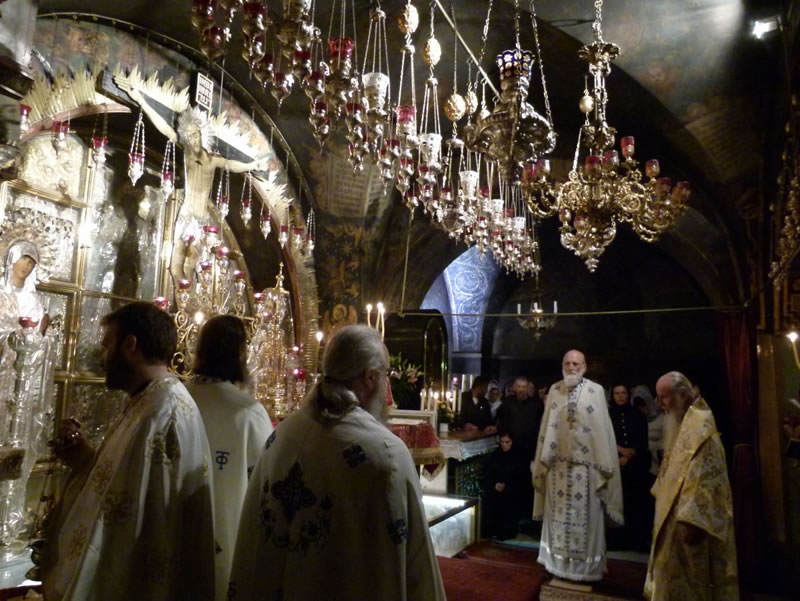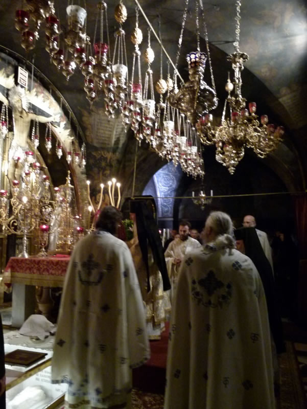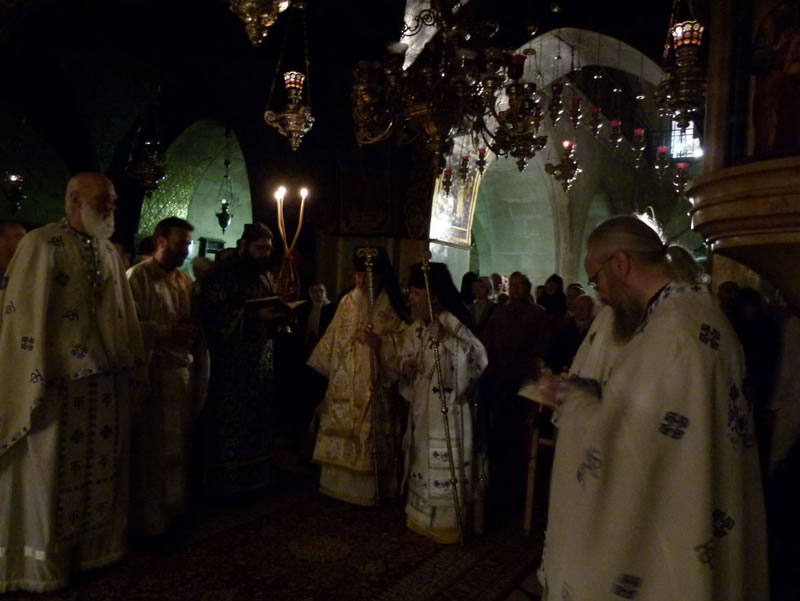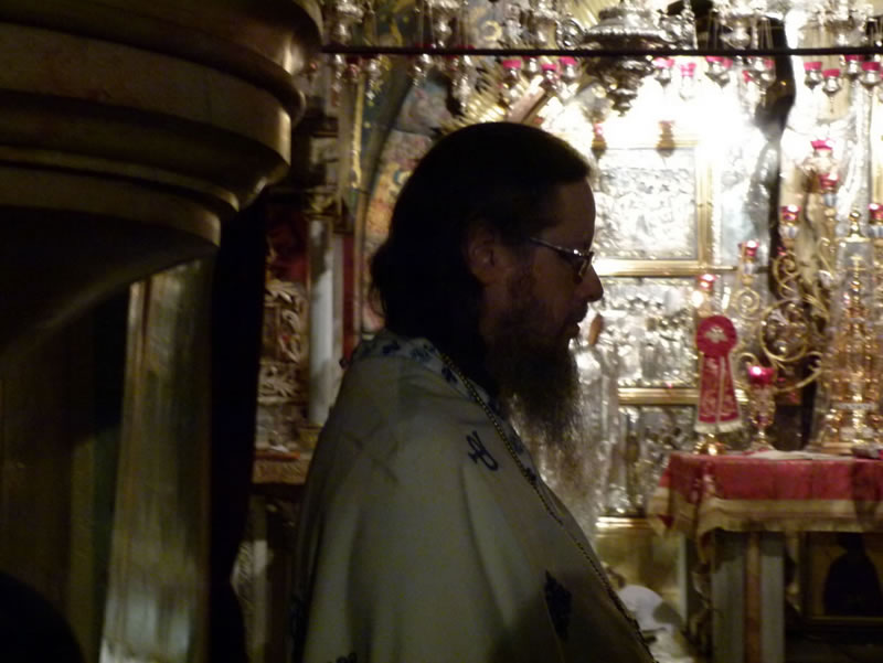 Liturgy was celebrated by His Eminence Archbishop Aristarchos of Constantina, General Secretary of the Holy Synod of the Jerusalem Patriarchate, along with Archbishop Mark, Archimandrite Roman (Krassovsky), Chief of the Russian Ecclesiastical Mission in Jerusalem, members of the Brotherhood of the Holy Sepulcher and other clergymen participating in the pilgrimage.