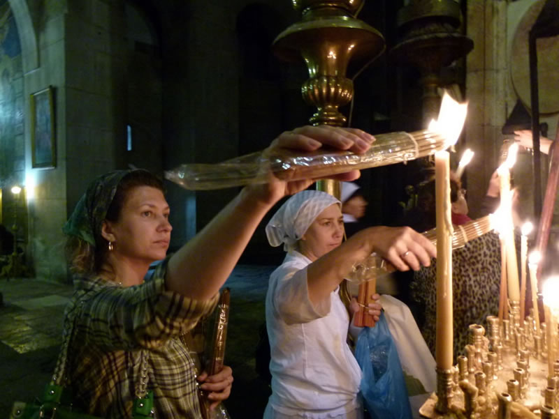 The pilgrims first worshiped at Matins in the Church of the Resurrection of Christ, and as the Great Laudation was sung, they ascended with the archpastors and clergymen to Golgotha, where Divine Liturgy was then performed, at which the pilgrims partook of the Holy Gifts of Christ.
