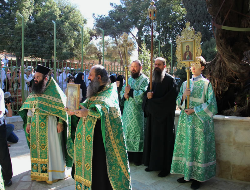 Afterwards, a procession of the cross went to the Oak of Mambre, where a moleben was performed.