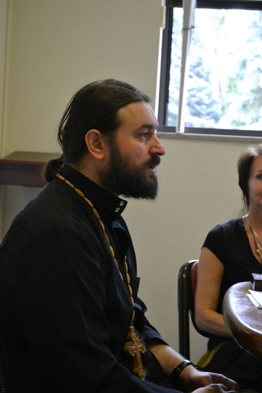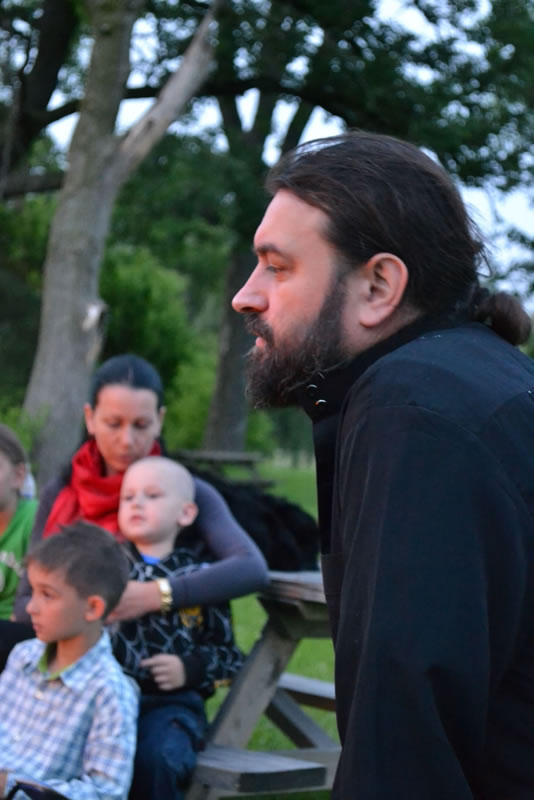 The first two days of the conference were held at Novo-Gracanica Monastery of the Serbian Orthodox Church. On Friday evening, a bonfire discussion was held on a meadow at the shore of the monastery lake. Fr Andrei sat on a bench, with his listeners surrounding the bonfire, enthusiastically discussing Divine Liturgy. Some of the participants shared the thought that they felt like they were back in those distant times when the first Christians would sit around a fire, talking about Christ, strengthening their faith in Him in mutual love. On Saturday , Fr Andrei led a discussion on the family as a “school of all virtues,” touching upon the widest range of phenomena of daily life of each of us, how they affect our families, and how we can remain Christian in our times. The third day of the conference was held at Holy Virgin Protection Cathedral’s hall, where after Divine Liturgy and lunch, Fr Andrei frankly answered parishioners’ questions.