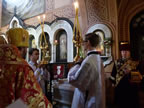 On Thursday, July 18, 2013, the feast day of Holy New Martyrs Grand Duchess Elizabeth and Nun Barbara, His Grace Bishop Theodosius of Seattle, who is leading a pilgrimage from the Western American Diocese to Jerusalem and Palestine, officiated at Divine Liturgy at the Russian Gethsemane Convent. He was joined by Archimandrite Roman (Krassovsky), Chief of the Russian Ecclesiastical Mission in Jerusalem of the Russian Orthodox Church Outside of Russia, and clergymen of both Russian Missions.