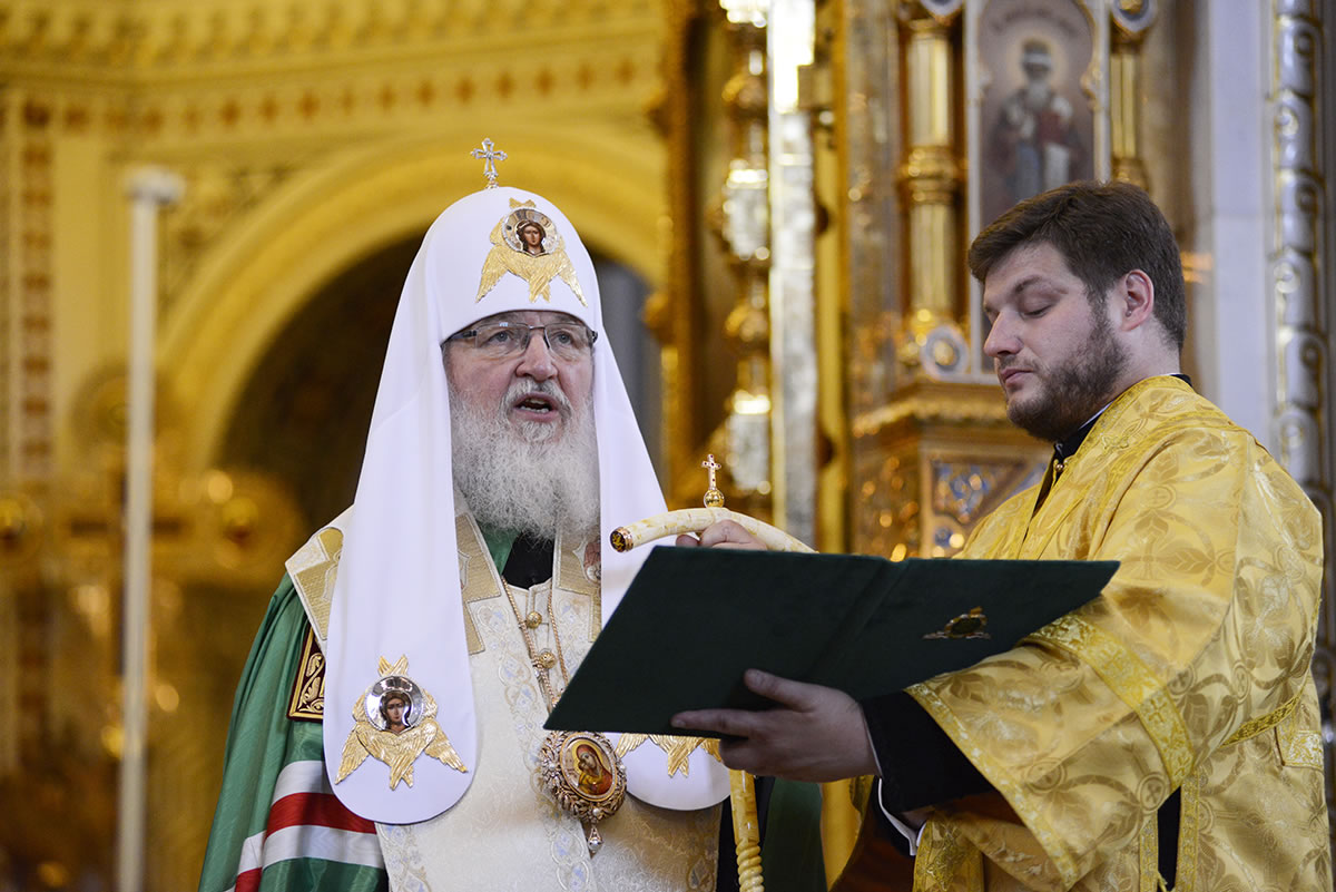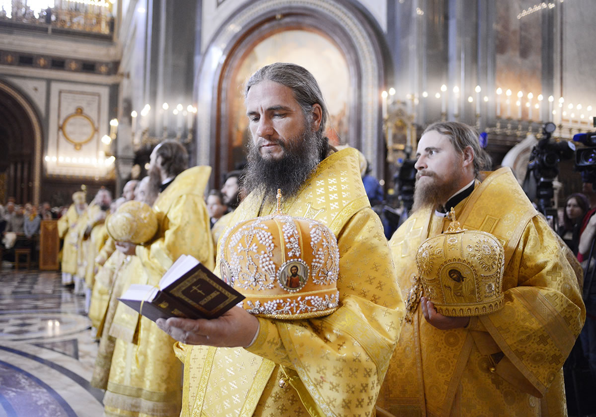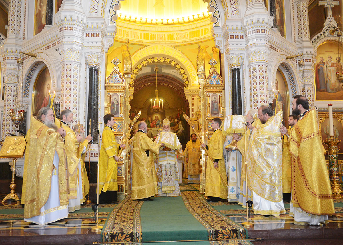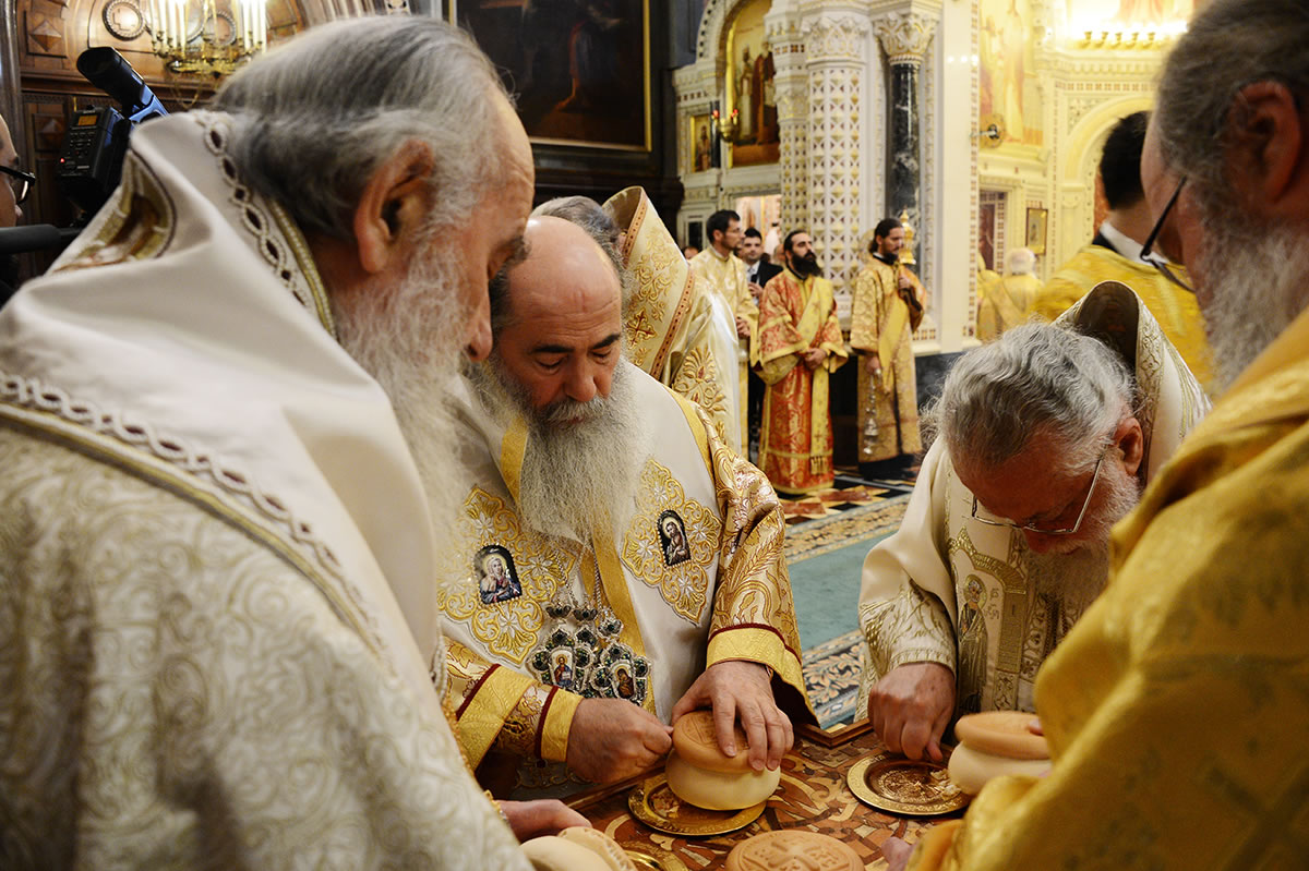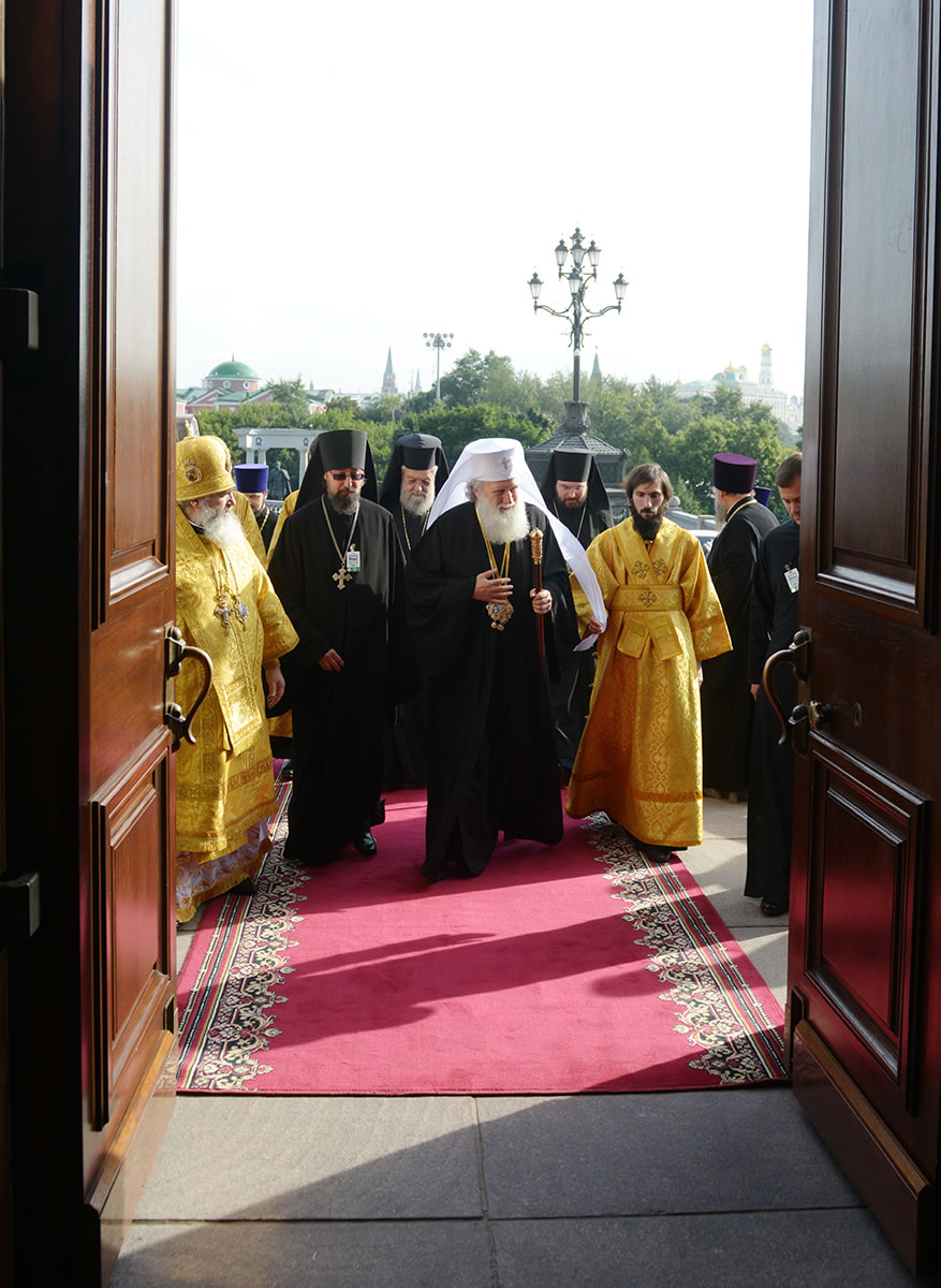 Joining the primates were: His Eminence Metropolitan Emmanuel of France, the head of the delegation of the Patriarchate of Constantinople; His Eminence Metropolitan Antonio of Mexico, Central America, the Caribbean and Venezuela, heading the delegation of the Antiochian Patriarchate; His Eminence Metropolitan Iosif, leading the Romanian Orthodox Church’s delegation; His Eminence Metropolitan Prokopios of Philippi, Neapolis and Thasos, head of the Secretariat for Inter-Orthodox Relations of the Greek Orthodox Church and leading the Greek Orthodox delegation; His Eminence Metropolitan Joani, head of the delegation of the Albanian Orthodox Church; His Eminence Archbishop Rostislaw of Preshov, head of the delegation of the Orthodox Church of the Czech Lands and Slovakia; members of the Holy Synod and the Council of Bishops of the Russian Orthodox Church; delegates of the Local Orthodox Churches; heads of Synodal departments, monastery priors and clergymen of the Moscow Patriarchate.