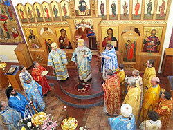 During Divine Liturgy, in addition to the rector and parish clergymen Deacon Igor Tarasov and Deacon Vladimir Trushin, concelebrating with the bishops were: Archimandrite Nektary (Harding) and Protopriest John Carlos Rios from Kissimmee’s Spanish mission; Hieromonk Nicholas (Perekrestov) from Fort Myers; Hieromonk Mark (Calderon) from Nicaragua; Hieromonk Tikhon (Gayfudinov) from New York; Protodeacon Basil Milonov of Ottawa, Canada and Deacon Michael Criscella of Ft Lauderdale, FL.