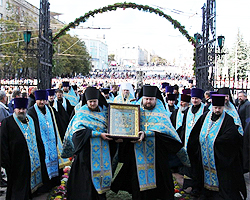 On September 25, 2013, the Apodosis of the Nativity of the Most-Pure Mother of God, in accordance with ancient tradition, a procession of the cross took place with the miracle-working Kursk-Root Icon of the Mother of God "of the Sign,” from the Kursk-Root Hermitage to Znamensky Cathedral in the city of Kursk.