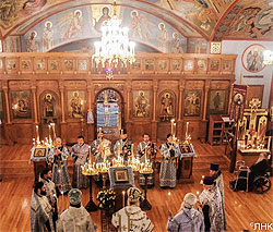 The choir sang magnificently, joined by some singers from nearby Resurrection Cathedral of the Serbian Orthodox Church. At the end of the service, Bishop Peter thanked Metropolitan Amphilohije for finding the time for joint prayer, and also for his staunch defense of the rights of the Orthodox faithful in the Balkans. After the service, the clergymen and guests were invited to a light Lenten repast in the parish hall.