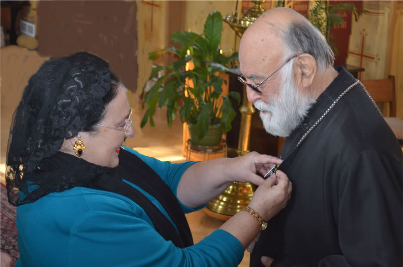 From Novo-Diveevo Convent, the Grand Duchess and the clergymen went to Holy Virgin Protection Church in Nyack, NY, where Protopriest George Larin, its rector, greeted them, showing them the church, parish hall and school. Her Imperial Highness awarded Fr George the Imperial Order “Jubilee of the All-Russian Podvig .” The Larin family then invited Her Highness to lunch, at which Fr George told Her Highness about his childhood in Shanghai, where he served as acolyte under St John (Maximovich), who had contributed so greatly to the Imperial House in exile.