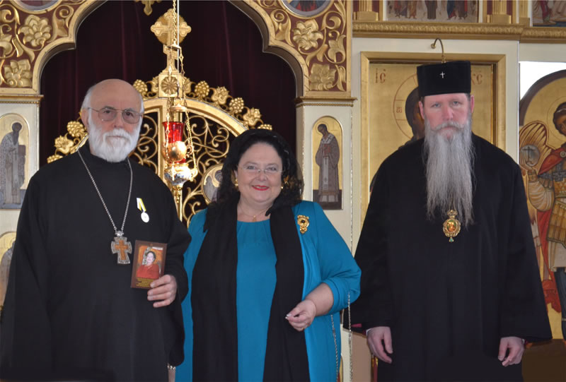 His Eminence then awarded Grand Duchess Maria Vladimirovna with the Order of the Kursk-Root Icon of the Mother of God “of the Sign,” of the First Degree, in recognition of the accomplishments of the Romanov Dynasty on the 400th anniversary.