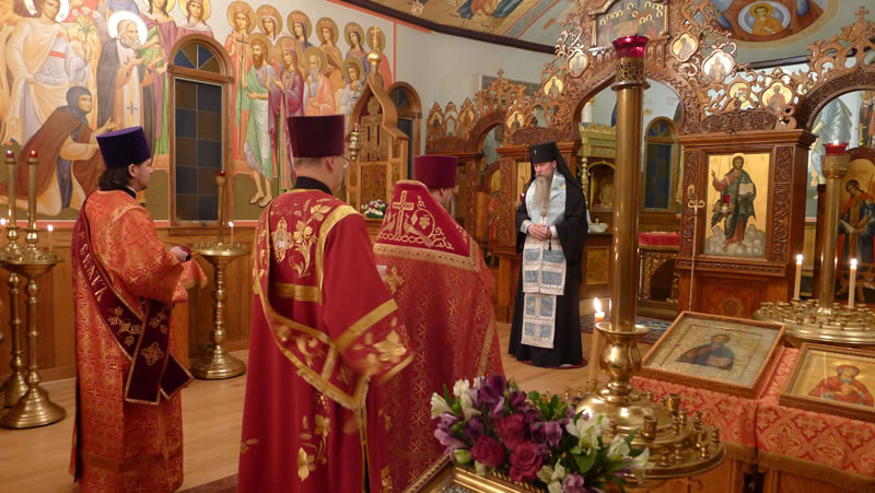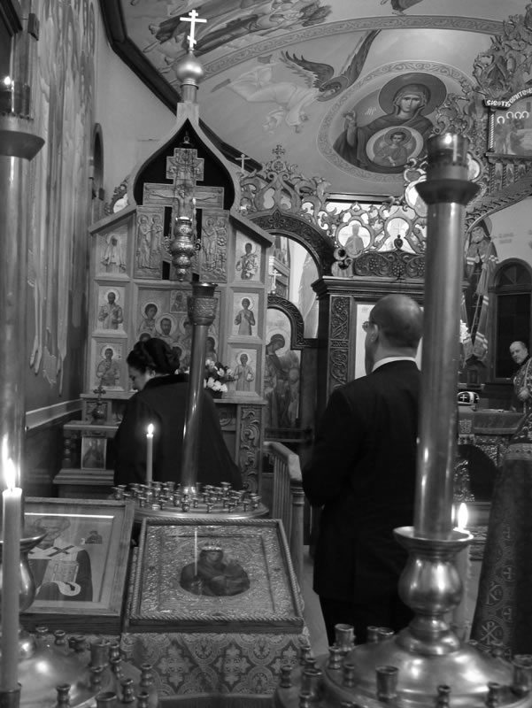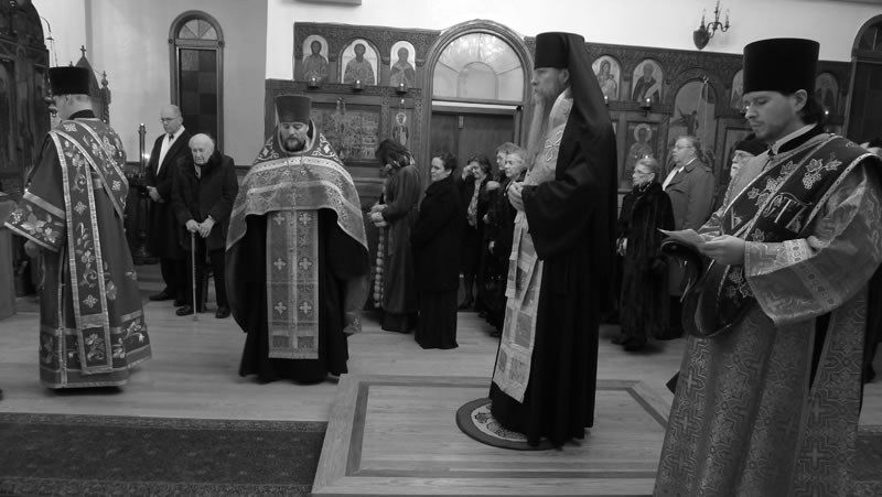 On December 10, the Grand Duchess prayed during Divine Liturgy at the Synodal Cathedral. Officiating was Metropolitan Hilarion, along with the hierarchs participating in a regular session of the Synod of Bishops, which had concluded a day earlier: His Eminence Archbishop Mark of Berlin and Germany His Eminence Archbishop Kyrill of San Francisco and Western America; His Eminence Archbishop Gabriel of Montreal and Canada; His Grace Bishop John of Caracas and South America; His Grace Bishop George of Mayfield, as well as His Grace Bishop Jerome (retired), plus visiting hierarchs, including His Eminence Archbishop Justinian of Naro-Fominsk, Administrator of the Patriarchal Parishes in the USA (Moscow Patriarchate), and His Grace Bishop Mitrophan of Eastern America (Serbian Orthodox Church). During the Great Entrance, Grand Duchess Maria Vladimirovna and her son, the Heir to the Russian Throne, Grand Duke Georgy Mikhailovich, were commemorated by Vladyka Mark.