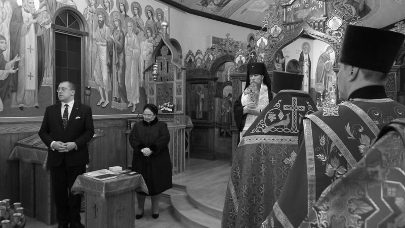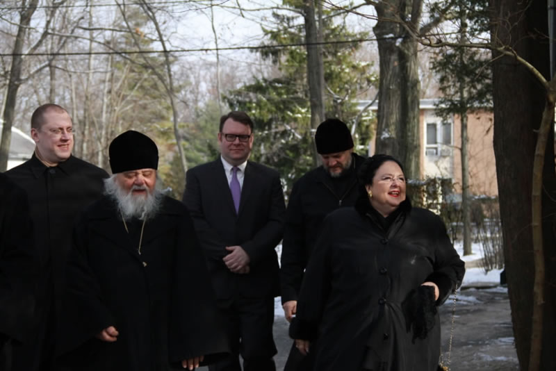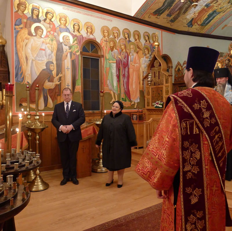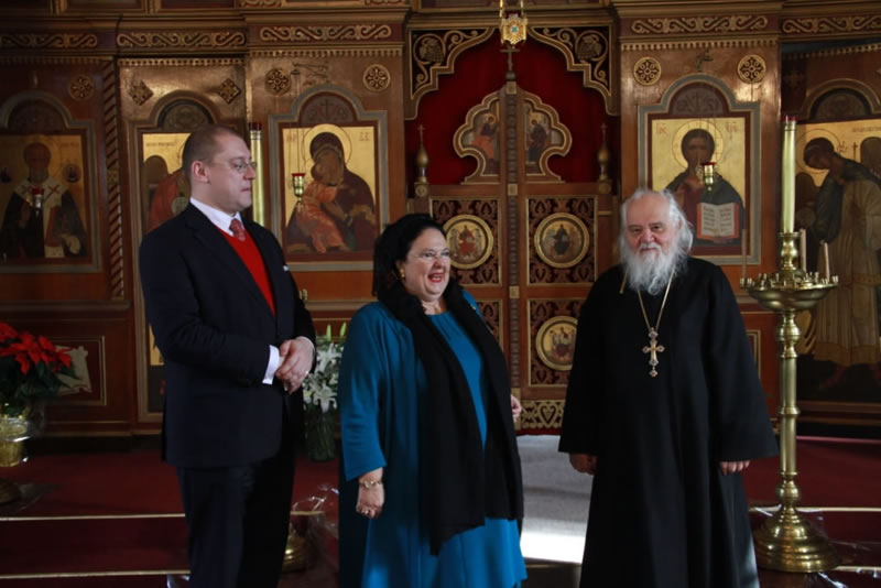 On December 14, Fr Serafim took Grand Duchess Maria Vladimirovna to visit Intercession of the Mother of God Church in Glen Cove, NY, where its Rector, Priest Alexandre Antchoutine, performed a moleben to the Holy Royal Martyrs for her safe return home. Many Years was then sung to Her Imperial Highness and her son, Grand Duke Georgy Mikhailovich. The Grand Duchess then thanked everyone who accommodated her trip and departed for the airport to fly home to Madrid.