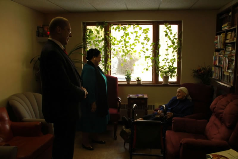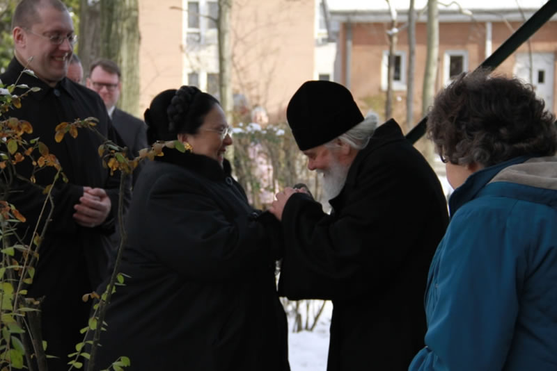 Afterwards, the Grand Duchess and journalists gathered in the cathedral hall, where Archbishop Justinian hosted an honorary luncheon for her. Participating were also Archbishop Kyrill, Fr Serafim, the clergymen of St Nicholas Cathedral and Alexander Zakatov. Vladyka Justinian talked about his duties as the Administrator of the Patriarchal Parishes in the USA. The Grand Duchess and His Eminence also discussed their joint prayers at the Predniestrov region in 2009.